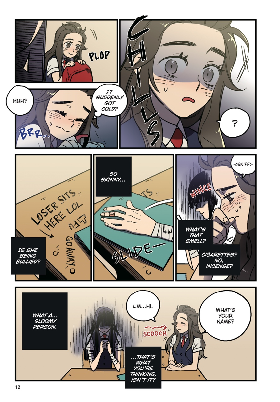 Gloomy, introverted, and the daughter of a shaman—Naerim is an easy target for the bullies in her class. With no friends and an aloof mother, she faces this daily nightmare all alone. But just as she hits rock bottom, her knight in shining armor swoops in! Except he’s dressed in sinister black...and he’s an ancient vampire?! Fetechou makes it no secret that he desires her blood, but he’ll work for every drop by giving her back what she most desperately needs—her smile. Can his manic energy help Naerim come out of her shell?