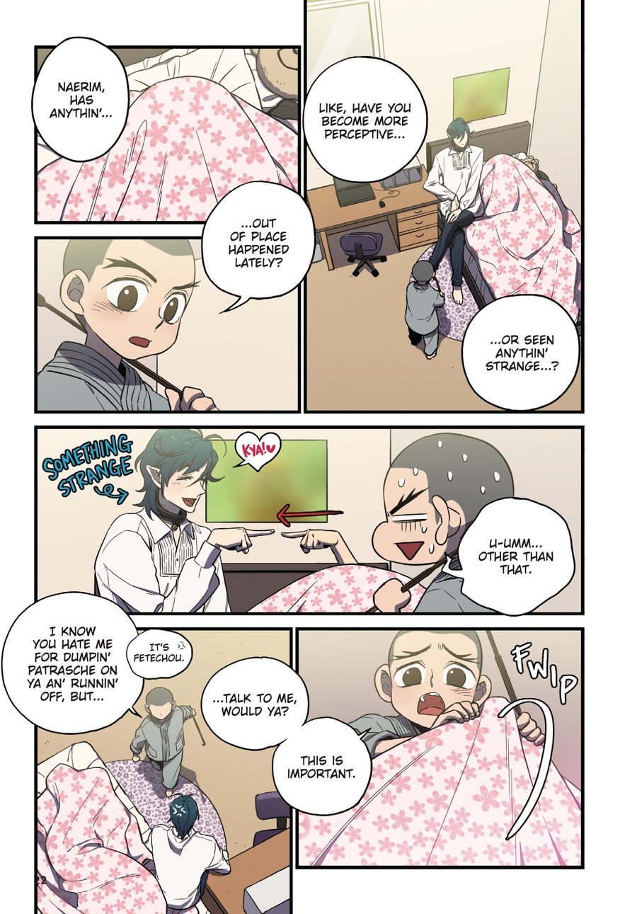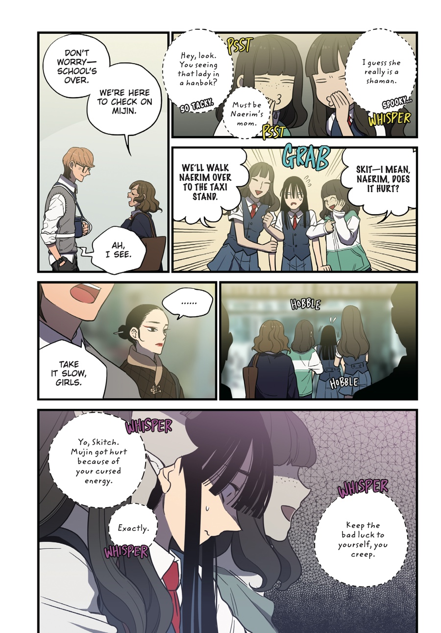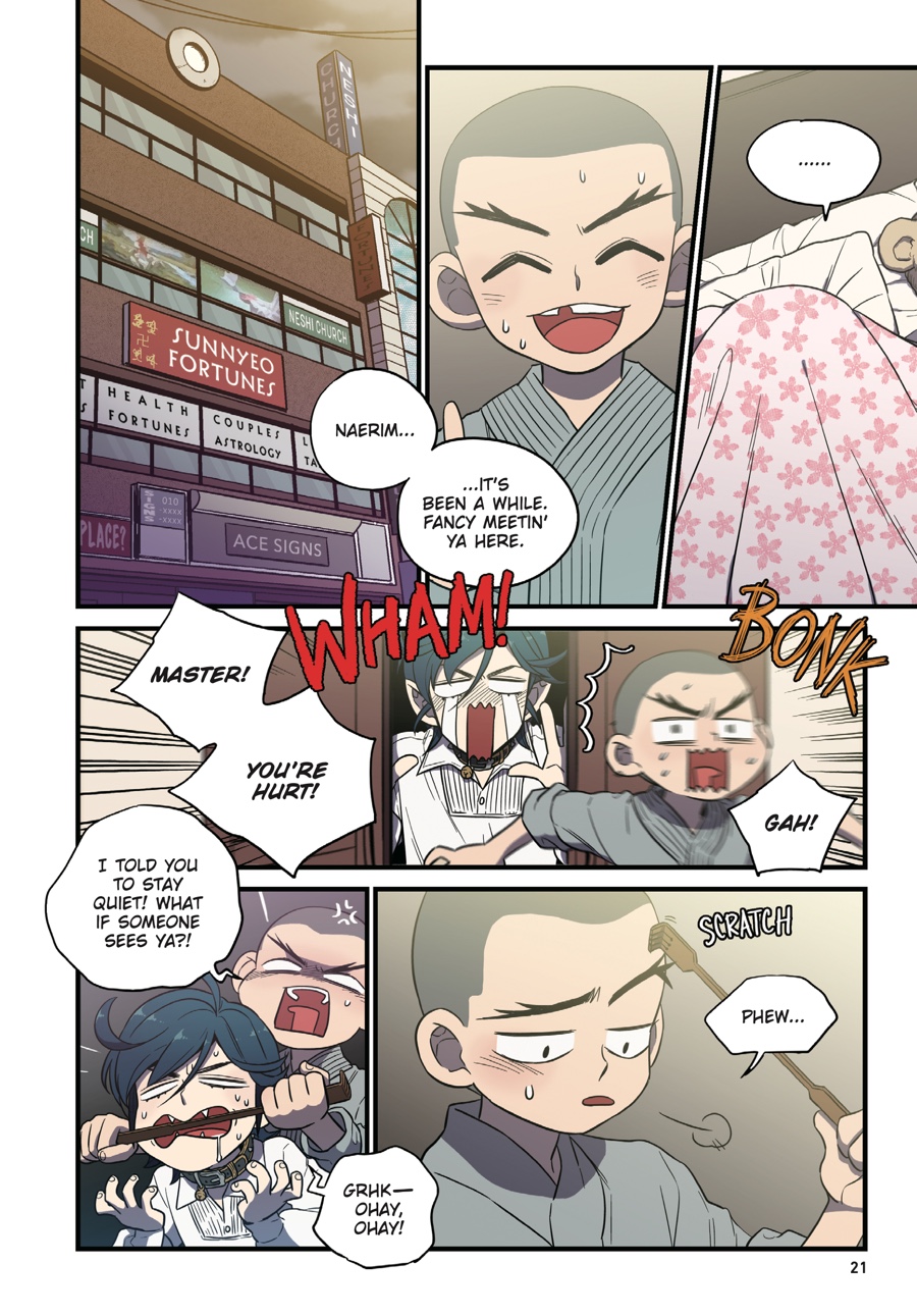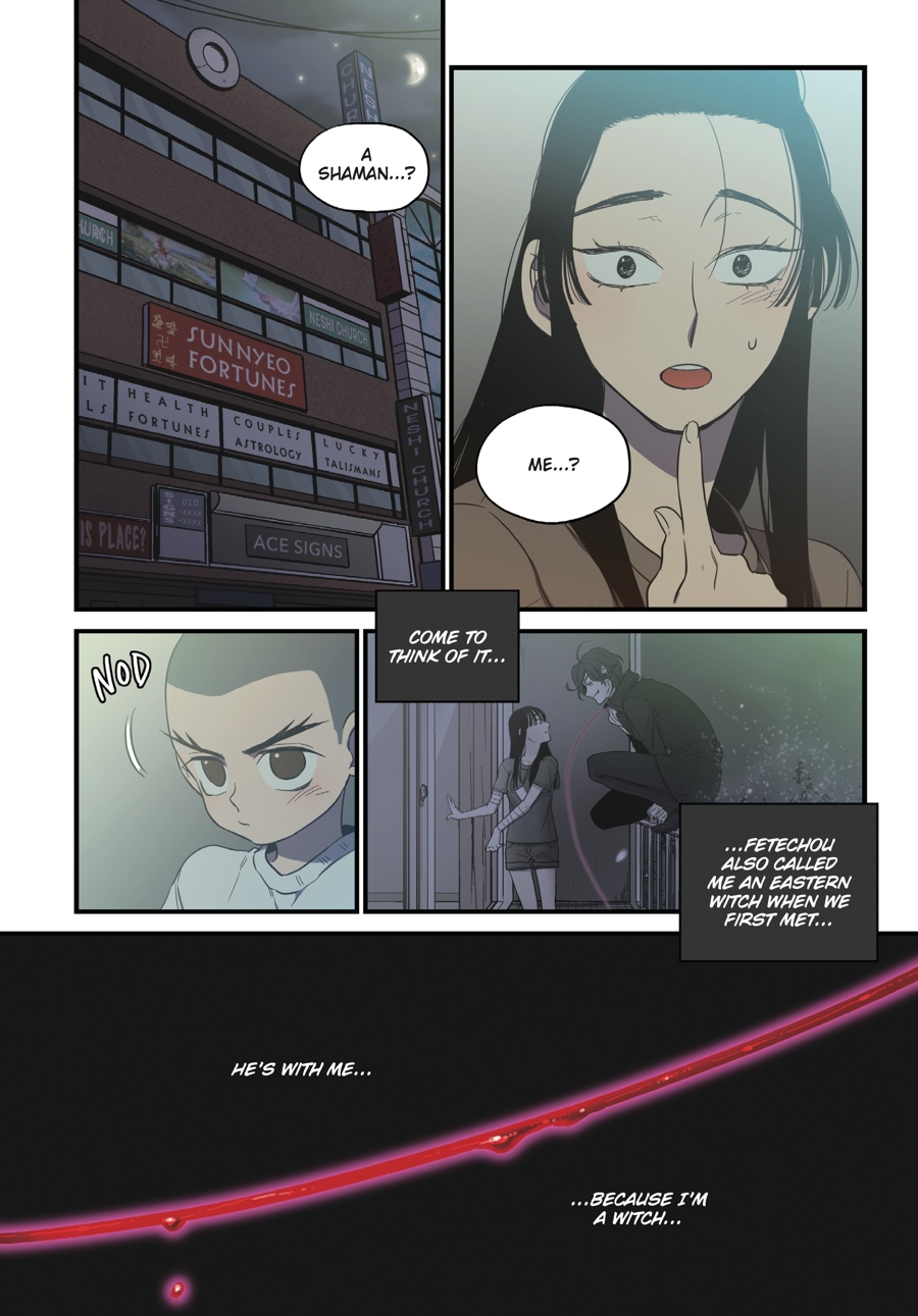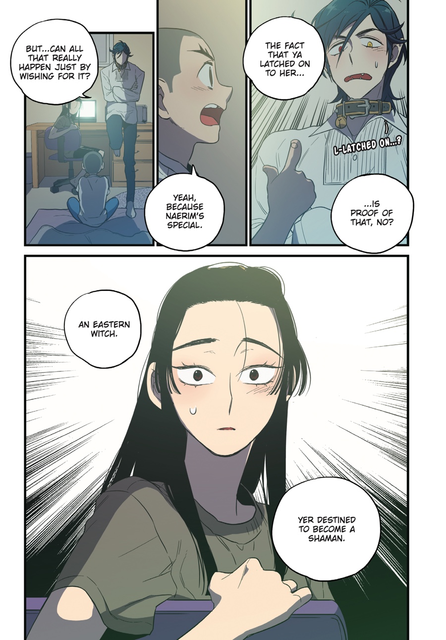 The strength to stand up With a vampire living in her closet and a shaman for a mother, Naerim’s life hasn’t felt normal for some time. Even still, a sudden string of accidents centered around Naerim seems particularly unusual and has Naerim wondering if Fetechou and her mother aren’t the only ones with supernatural ties. It’s the last thing Naerim needs when all she really wants is to fit in at school, but maybe these connections—and the support of Fetechou—will finally give her the courage to stand up to her human tormentors…