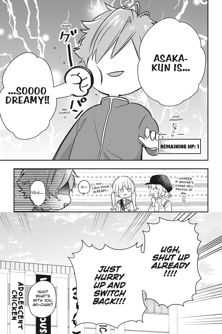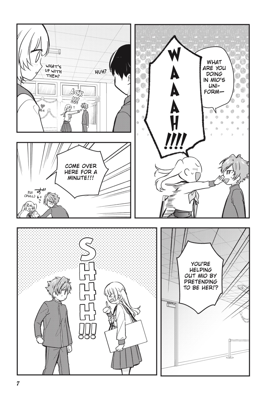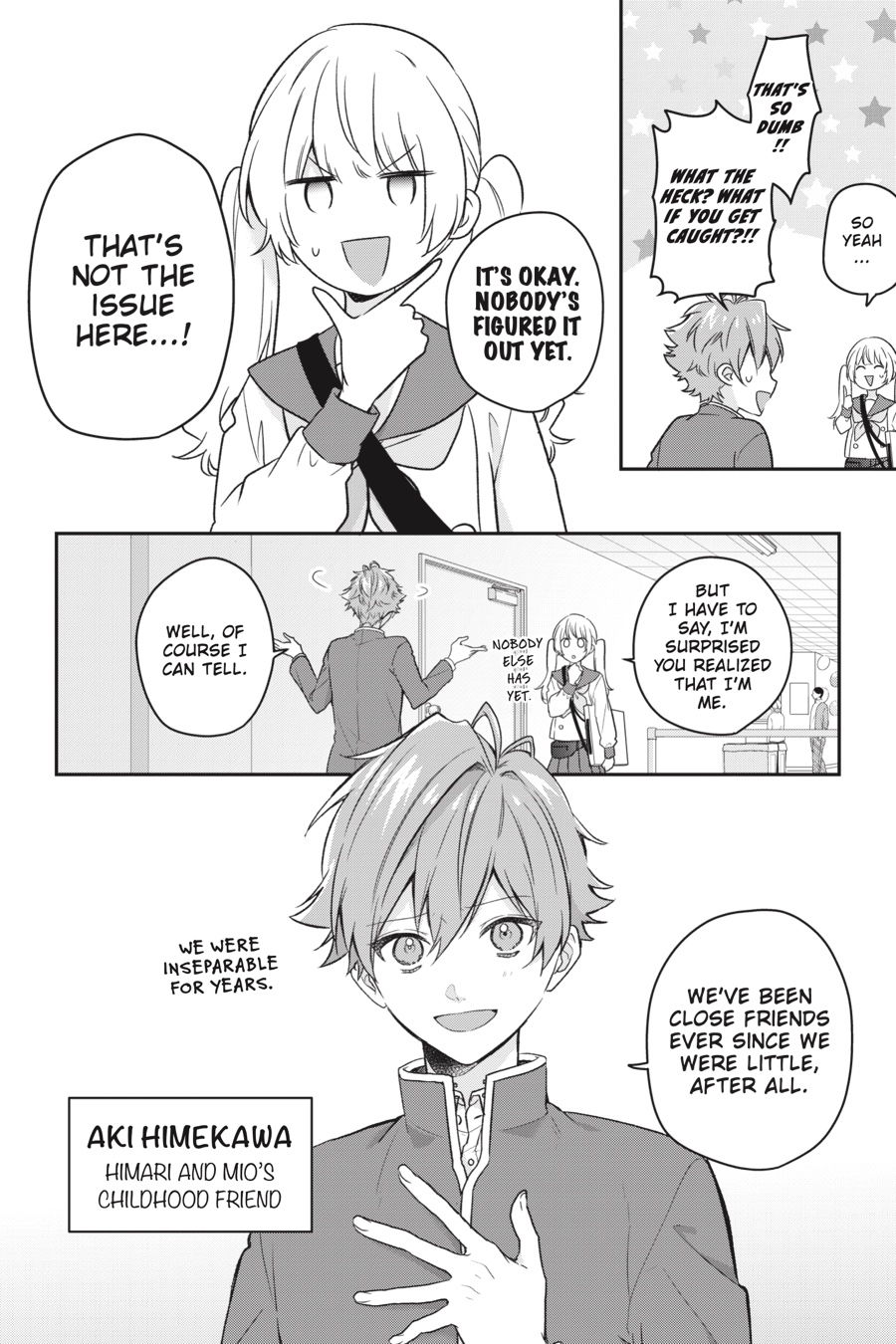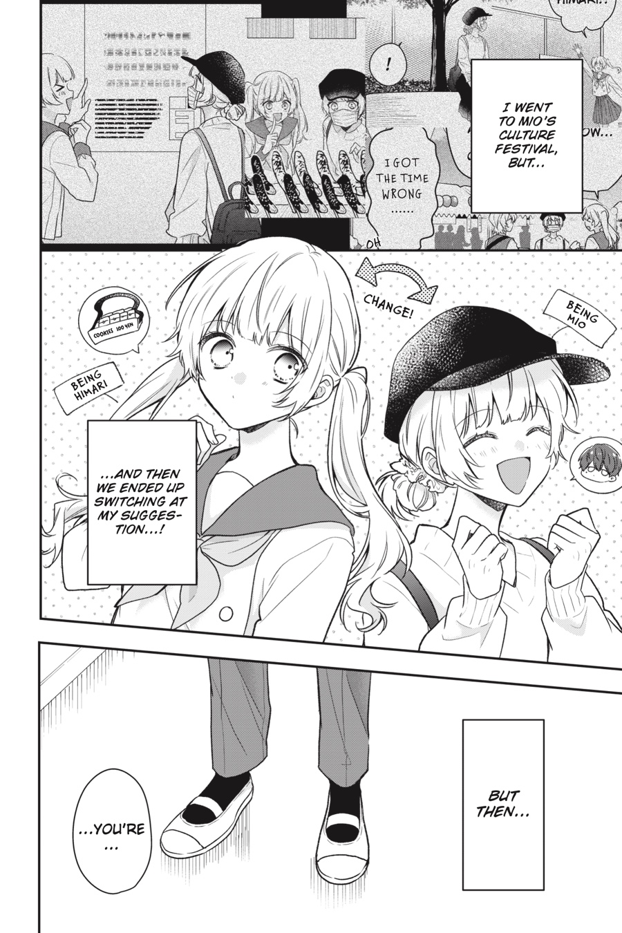 Someone at the culture festival has figured out Himari and Mio’s switcheroo—but Mio’s only got Asaka on her mind! There’s a popular legend that if two people hold hands during the culture festival after-party, they’ll become a loving couple…so things might just work out if she plays her cards right on their date! Inspired by her friend’s resolve, Shizuku decides to confess her feelings to Tsukiyono—who seems to be hiding a secret of his own. As the sisters’ double lives get more and more tangled, can they continue to keep up the facade?
