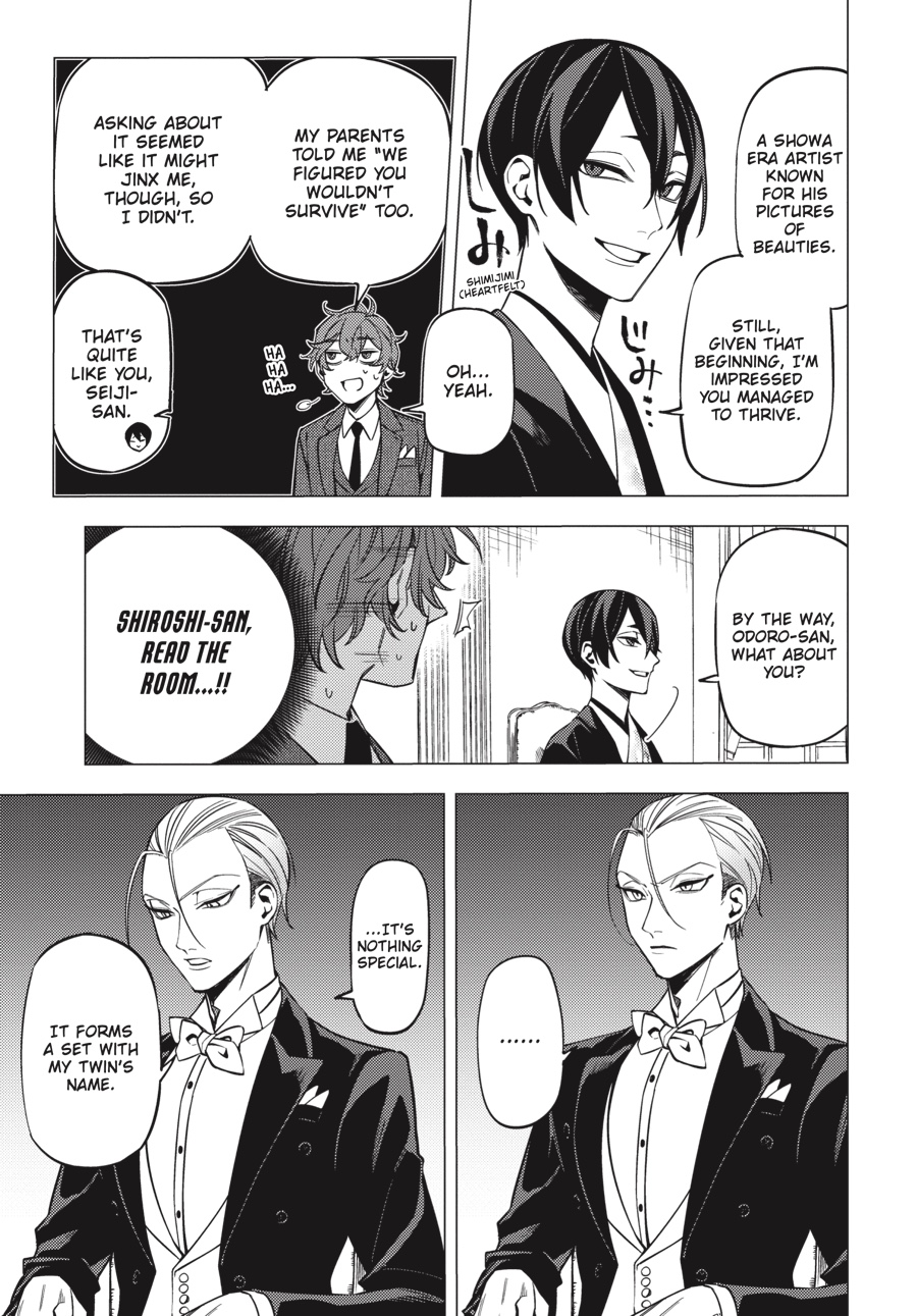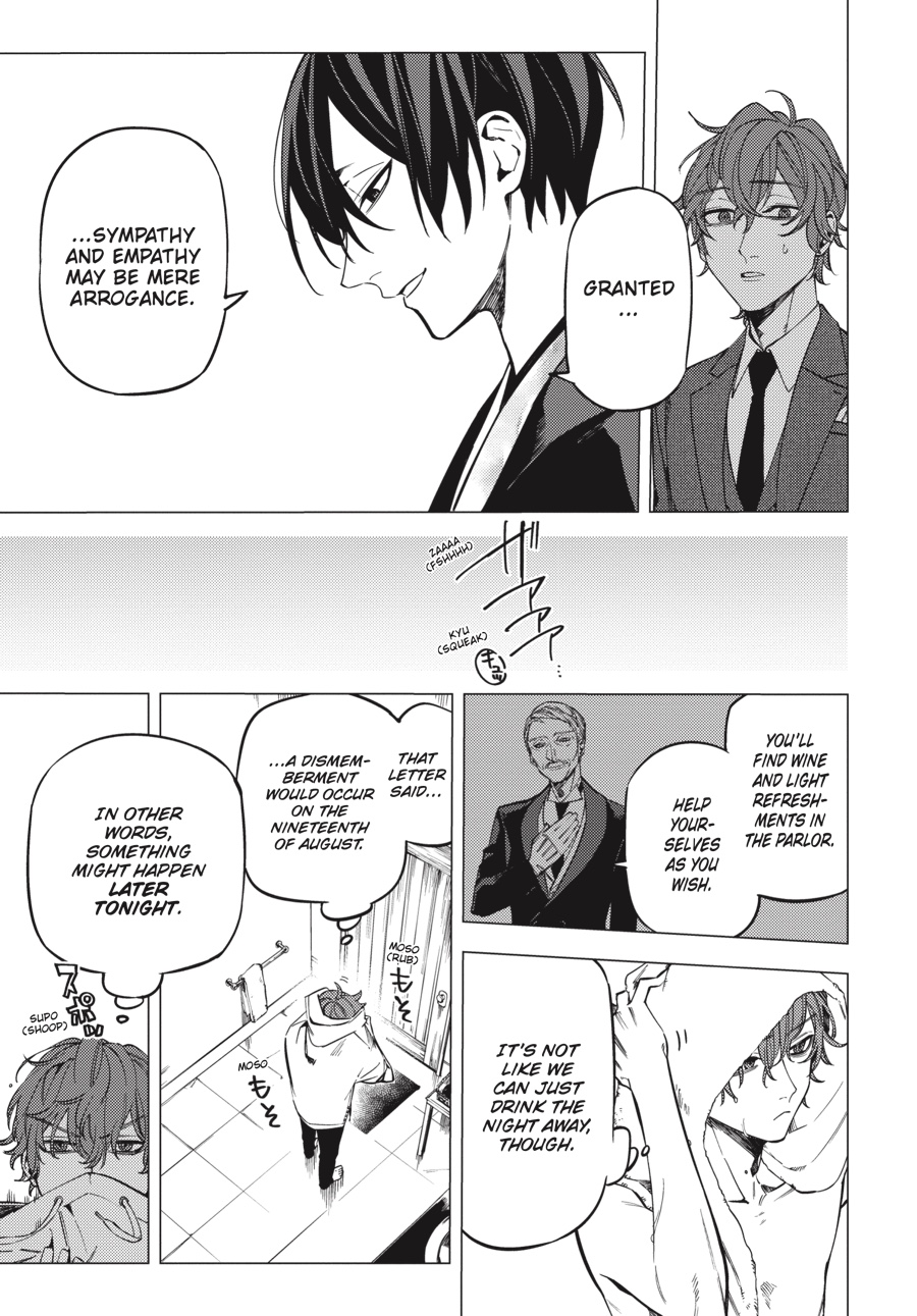 The stage is set, and the curtain rises on a tragedy. A masked dollmaker, a girl he claims to be his masterpiece, a loyal butler, and two feuding brothers…all trapped in the perfect storm for the “dismemberment” as foretold. But that isn’t the only grisly occurrence tonight: When Seiji witnesses a headless corpse that disappears soon after, he thinks his eyes are playing tricks on him! Shiroshi, Odoro, and Aka set out to investigate, but who will be the first to see through the island’s mysteries?