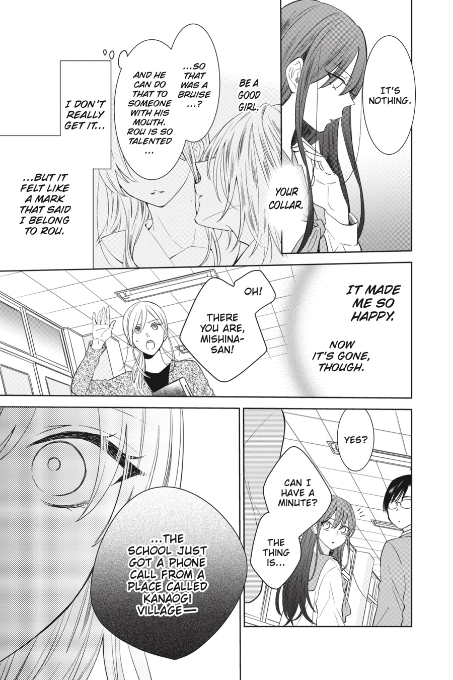 Tamaki’s and Rou’s shared rooming situation has been going swimmingly. They’re finally starting to get pretty cozy...until the day Tamaki gets a call that her grandmother has collapsed. Driven to visit her only remaining living relative, she returns to Kanaogi Village to check on her. Soon after she arrives, though, a shocking truth is revealed...!