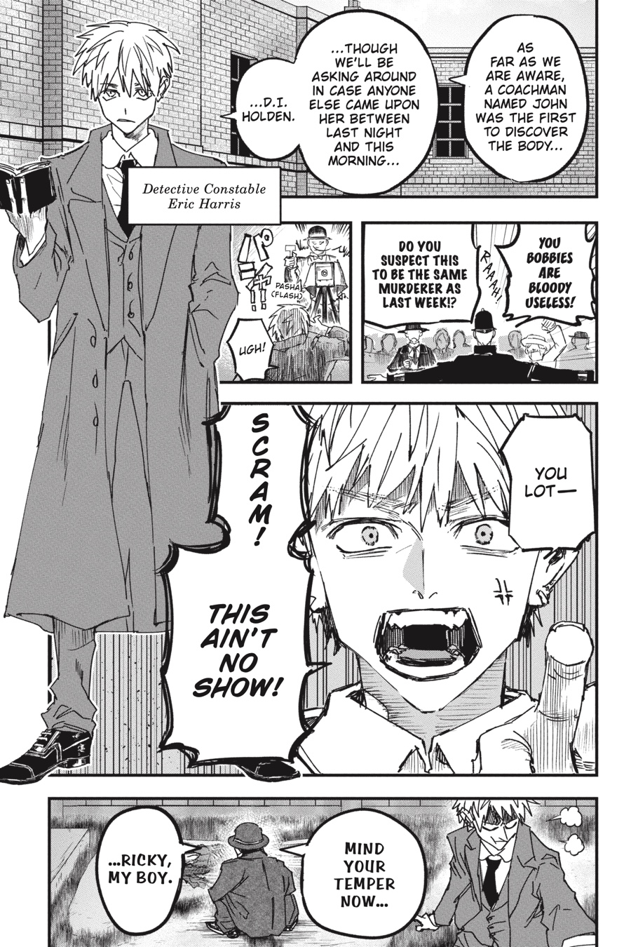 Ruwanda, a child of the darkness, now roams the world of the light. Having lost the only love he’s ever known, he cuts ties with the assassins guild and sets off on his own. Watching the days pass by vapidly, the boy grows into a young man…but he is spurred into action once more by a string of murders throughout London. In this final confrontation, who will be taken by the red fog plaguing the city…?