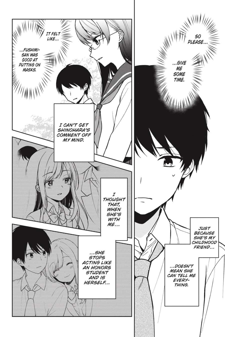 Hina refuses to reveal where she goes on the weekends—not even to Ryou. Worried, he decides to tail her, but what Ryou finds is completely unexpected— Hina is training to become an actress! Though he agrees to cheer her on as she makes her stage debut, Ryou can’t shake the feeling that his childhood friend is poised to ascend to heights he’ll never be able to reach…