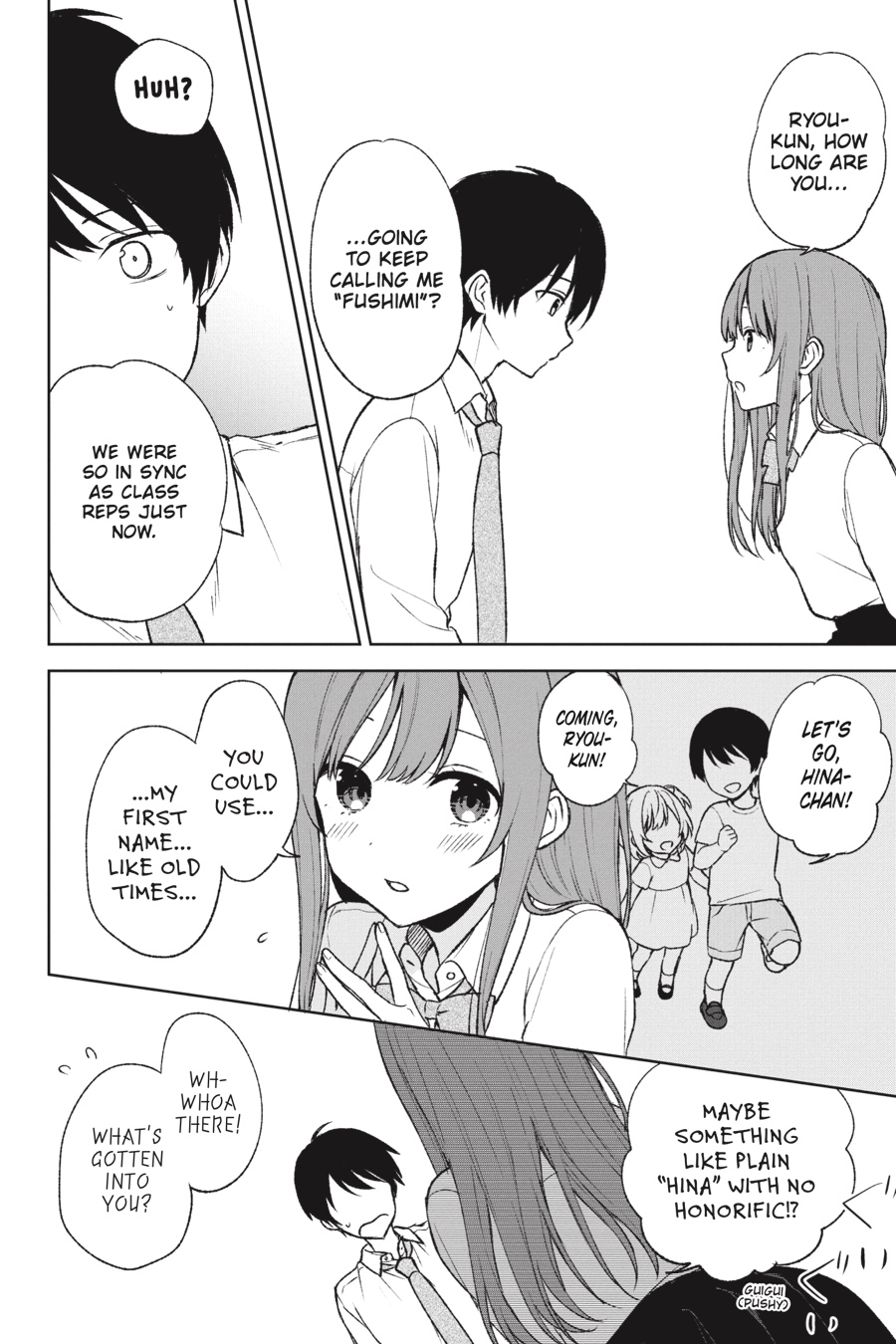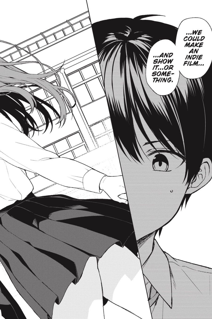 With the school festival on the horizon, the students of 2-B need to nail down their exhibit plans. Ryou proposes doing an indie film, but it seems convincing his classmates won’t be easy… Luckily, Hina loves the idea and is psyched to help! As the two childhood friends band together to create the perfect pitch, it’s a golden opportunity for the aspiring actress to bond with her crush. However, not everything goes as she hoped when Torigoe’s jealousy throws a wrench into their plans! Still, the show must go on, which means Hina needs to mend her friendship with Torigoe to get her on board with writing the script and fast…