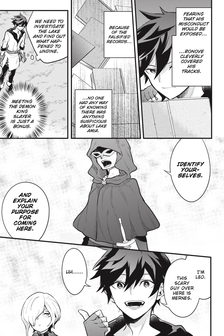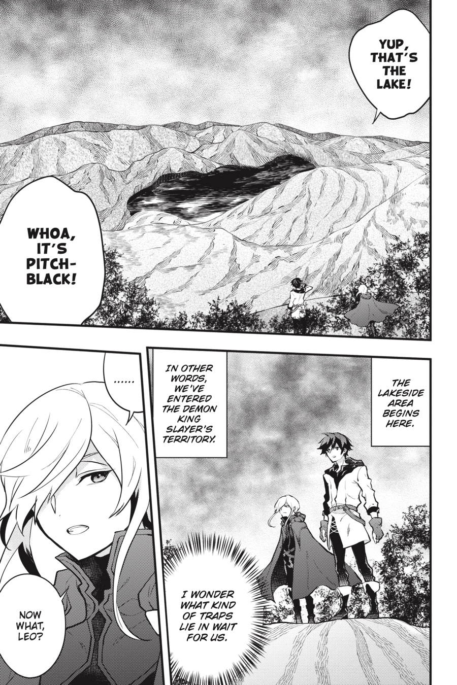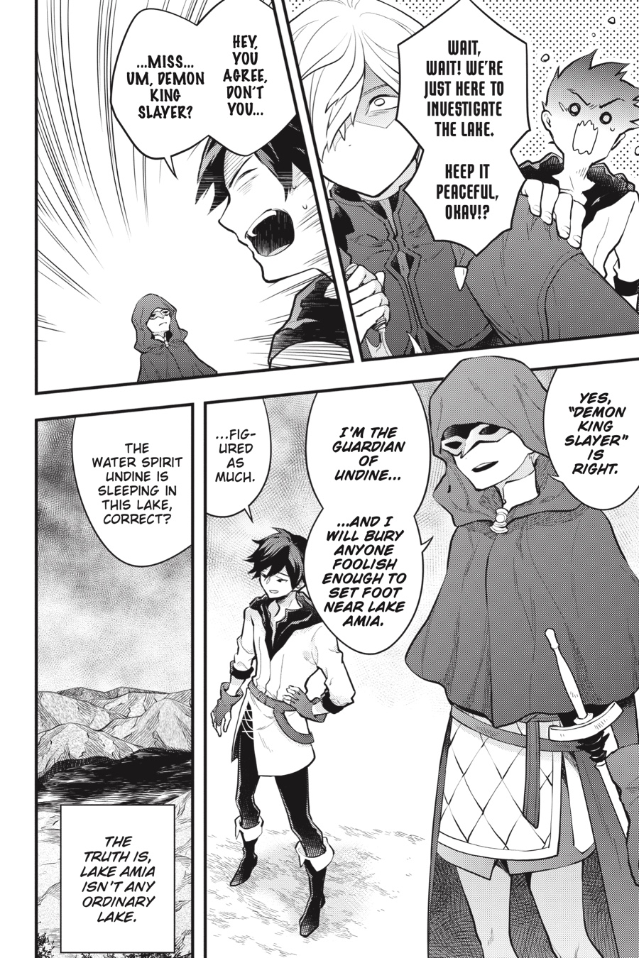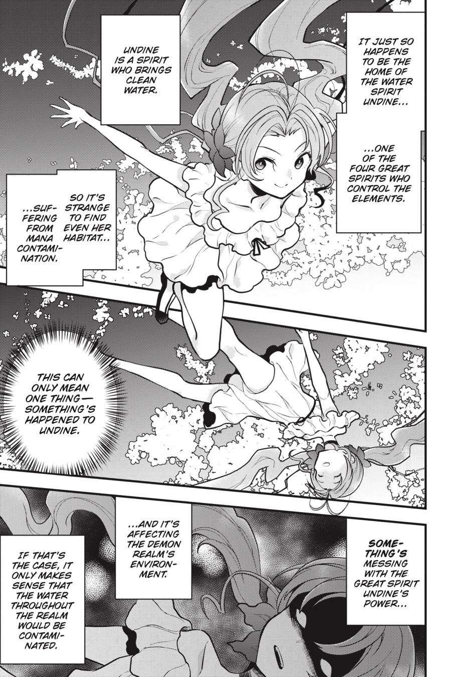 To find out the cause of water pollution in the demon realm, Leo and Mernes head off to investigate Lake Amia and its resident water spirit, Undine. But one thing stands in their way—the legendary Demon King Slayer, who swears to protect Undine at all costs! Just who is this mysterious foe?! Meanwhile, Demon Queen Echidna puts her plan into motion, creating a fake identity to confer with Leo about her troubles. Her disguise is perfect, and there’s absolutely no chance Leo will see through it…right?