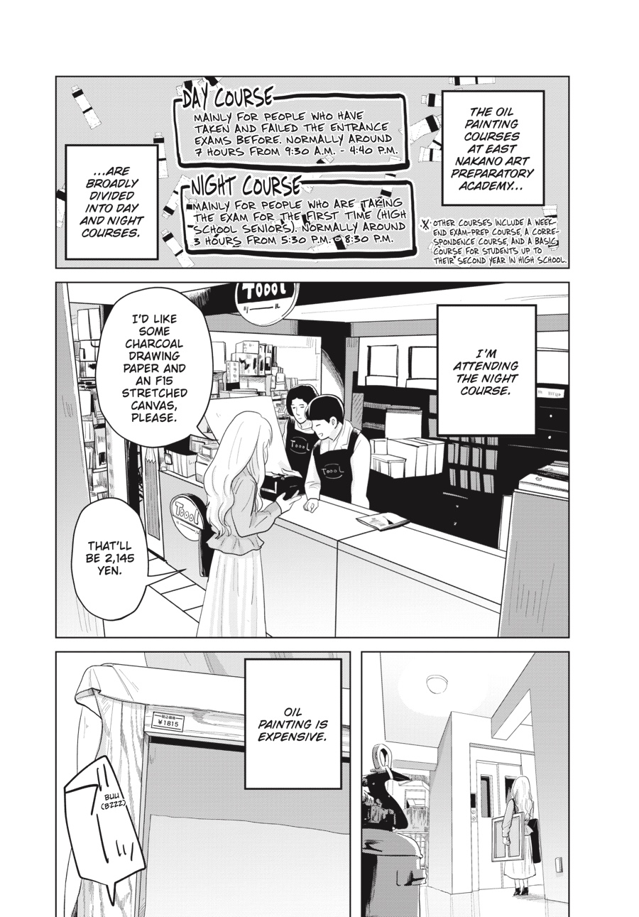 “What does it mean to be loved by the muses?” Miyuu is attending night classes in the hopes of getting into Tokei University of the Arts. As she works on her painting assignments, however, she’s forced to confront her persistent doubts and abysmal self-esteem. And when it comes to the people in her life, she’s starting to discover an important lesson: Compassion and cruelty often go hand in hand.