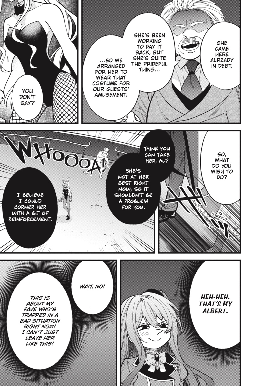 Whoever said no rest for the wicked was onto something. After I fulfilled my villainess role marvelously, Albert and I fled to a resort town in anticipation of an upcoming in-game event. Upon our arrival, we ran into another one of my all-times faves—who has been forced to compete in an underground fighting ring dressed as a playboy bunny! Plus, this is way before she’s supposed to show up in the main storyline. The continuous changes to the narrative are kind of concerning, but no time to worry about that now—I’ve got a hero to save!