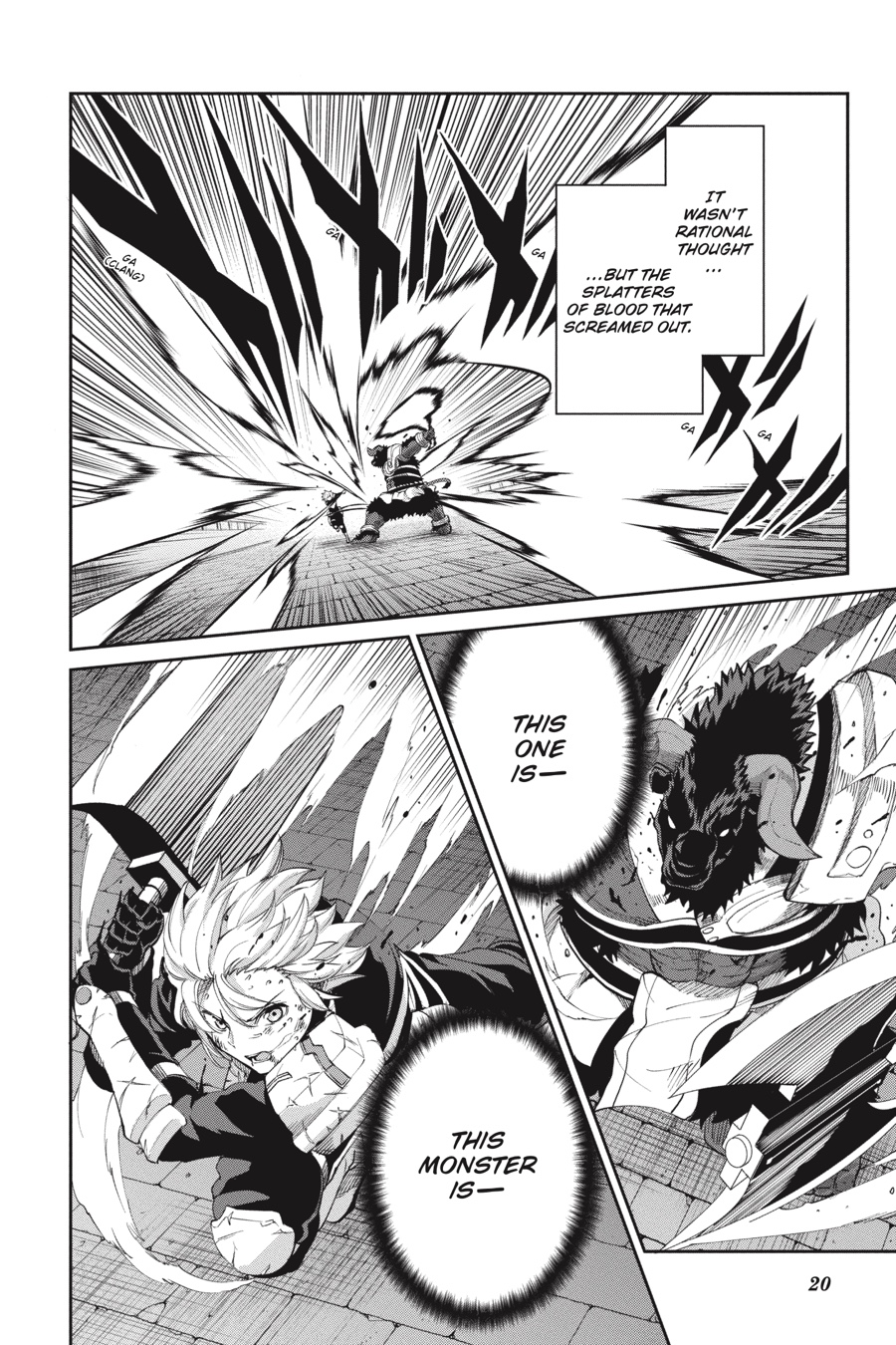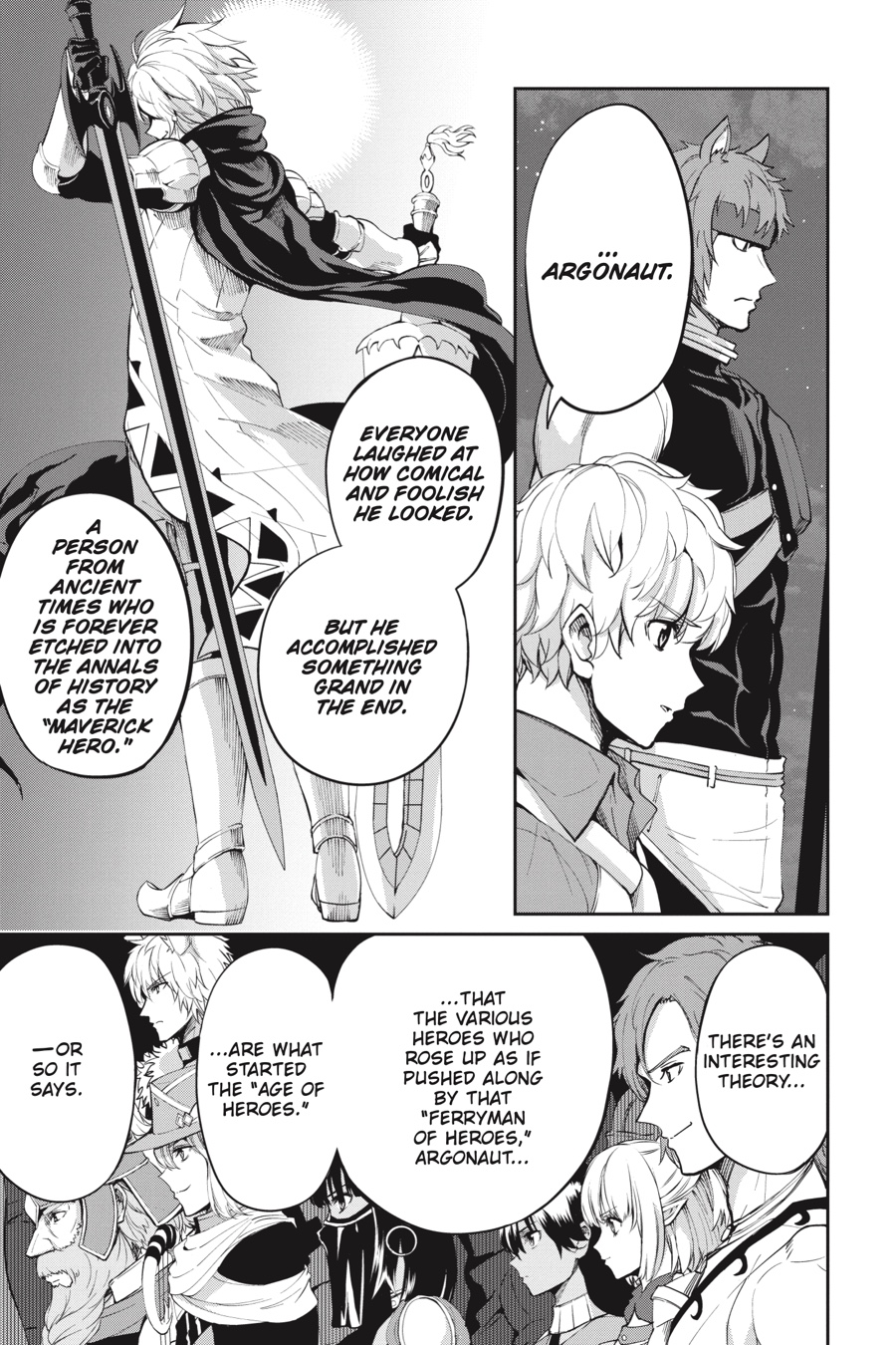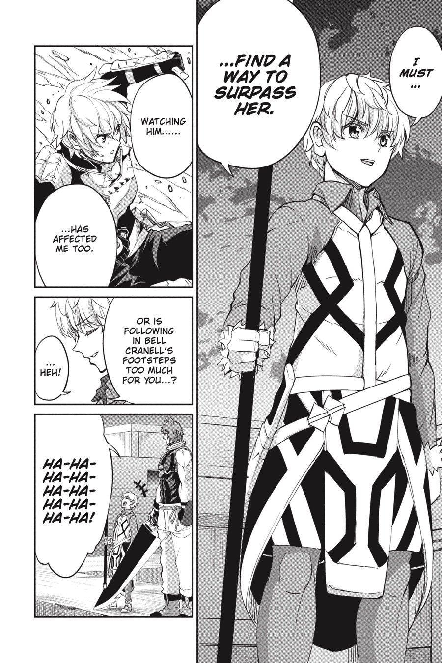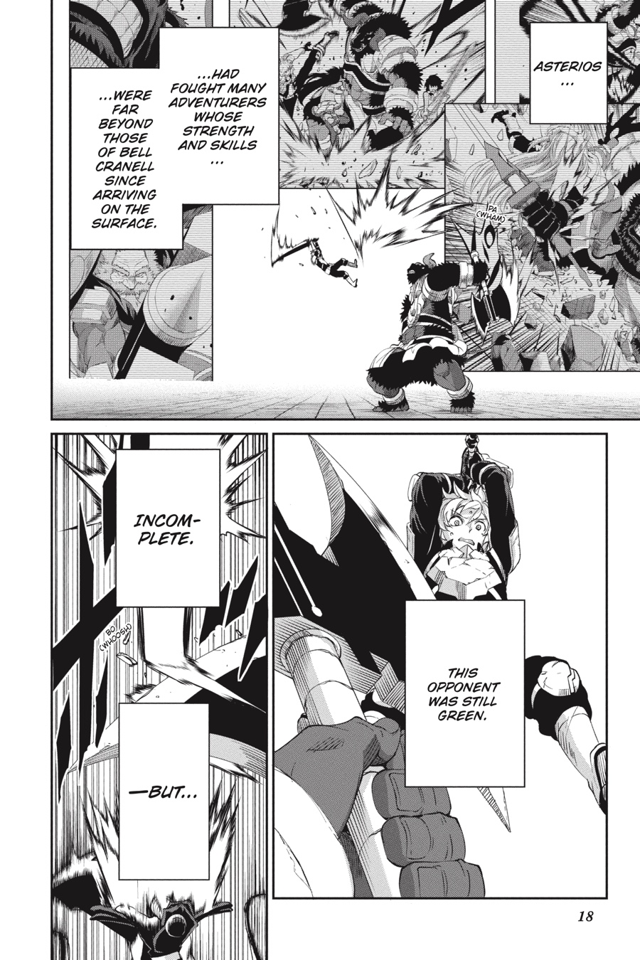 The black minotaur Asterios appears before Bell, challenging him to a long-awaited duel! While Bell’s not one to fight if he can avoid it, he can’t help getting excited at the thought of going up against such a powerful opponent. The townspeople rally around Bell as he battles, and the adventurers in the area, including Aiz, look on in awe. Meanwhile, Finn and the rest of Loki Familia begin to put their plan to destroy the Evils into action…