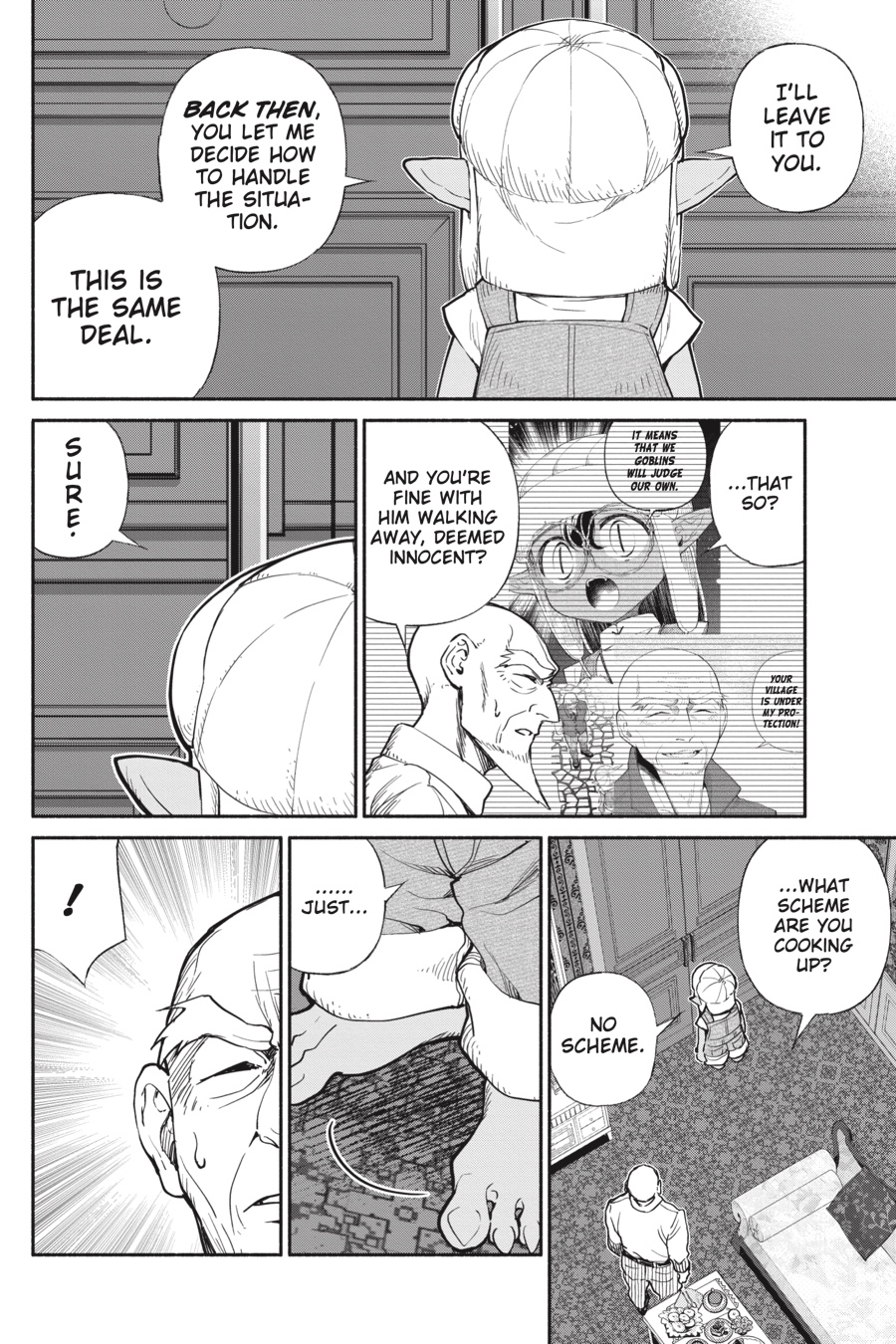 Salaryman Akira has been reincarnated as the exceptionally long-lived mayor of a goblin village in a fantasy world. He has a little society to shape as he pleases, a good relationship with the local human government, and enough inherited powers to make him a force to be reckoned with. But when a goblin is attacked on a trip to the human city, it turns out that even the count, for all his authority, can’t punish citizens for attacking monsters! What’s a goblin to do…?!