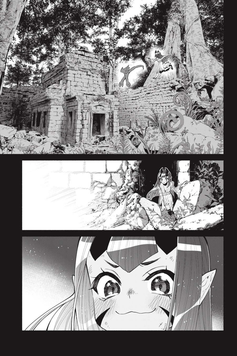 These days, Akira’s goblin village is starting to look more like a multicultural metropolis—it has a human ambassador, elves, a demon girl, and a real dragon…But peace and good times never last long! When Akira is away from the village, a scaled shadow sweeps in, bringing mayhem with it! No one in the village can put up a fight against their vicious visitor, and even Akira may not be able to bring her to heel…