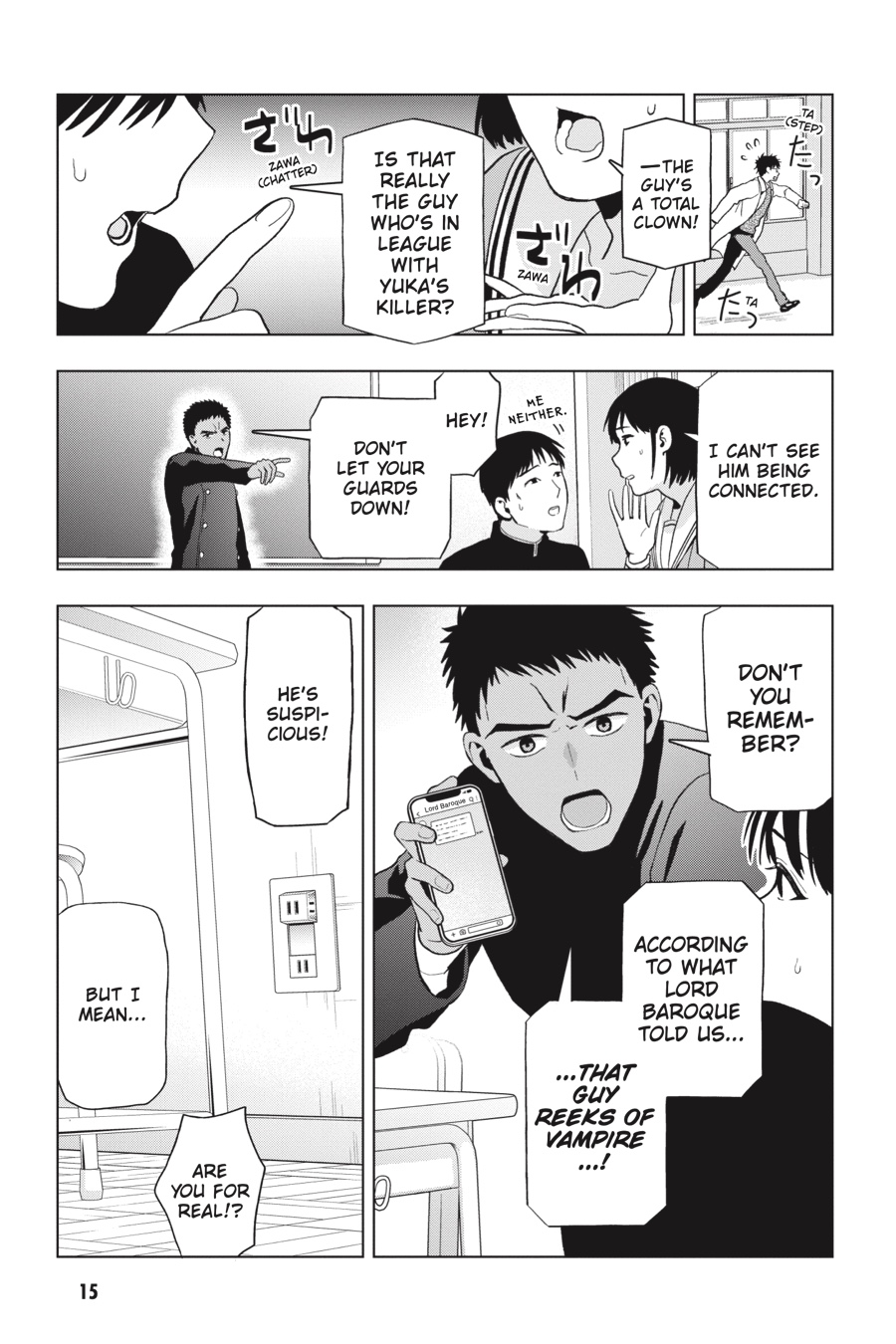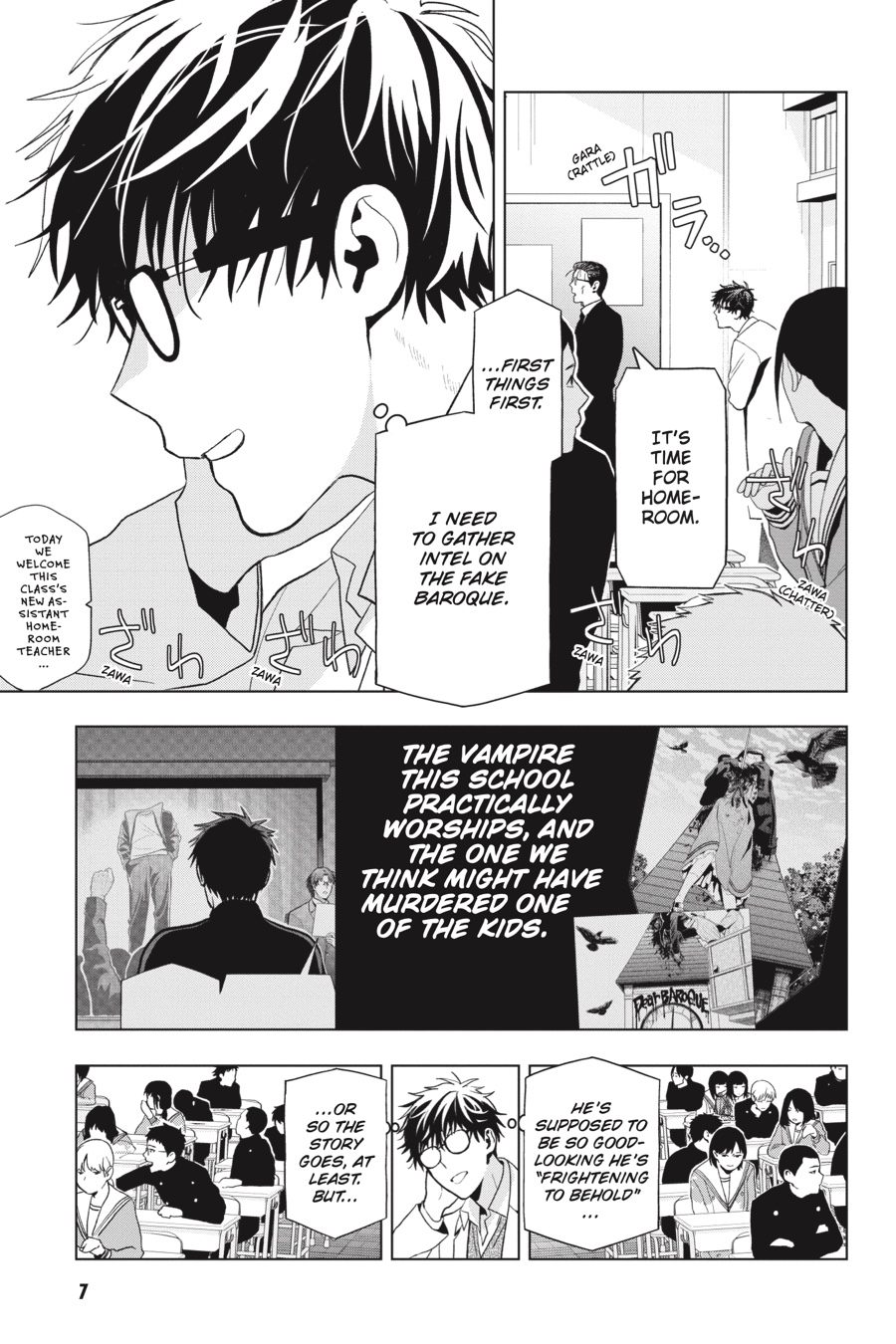 After a grisly murder takes place at a local high school, the victim is found to have had contact with a vampire pretending to be Baroque. With the faculty blocking attempts to investigate, Isuzu and Baroque go undercover as teacher and student to infifiltrate the school…but they didn’t anticipate the fake Baroque showing as much interest in Isuzu as the real one! Caught in a tug-of-war between two vampires, can Isuzu maintain his cover story and catch the murderer?!