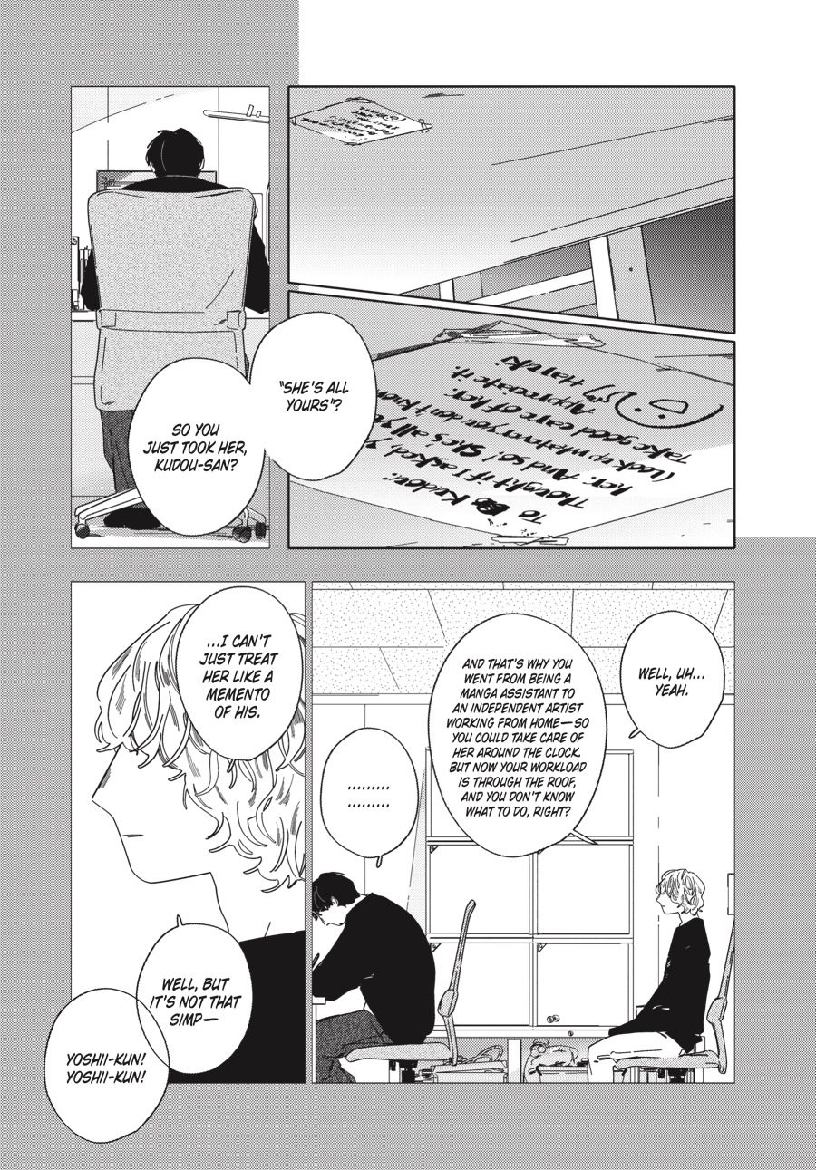 With those words, Souichiro Kudou’s life was changed forever. Suddenly, he has a four-year-old daughter named Kiki, thanks to his late friend Haruki. And it only gets more complicated when he proposes to a total stranger… Husband, lover, father, and friend—only time will tell whether Kudou can reconcile his past with Haruki and learn to fill these roles for the new people in his life. Luckily for him, Kiki and his new spouse, Fusako, are ready and willing to figure it out alongside him!