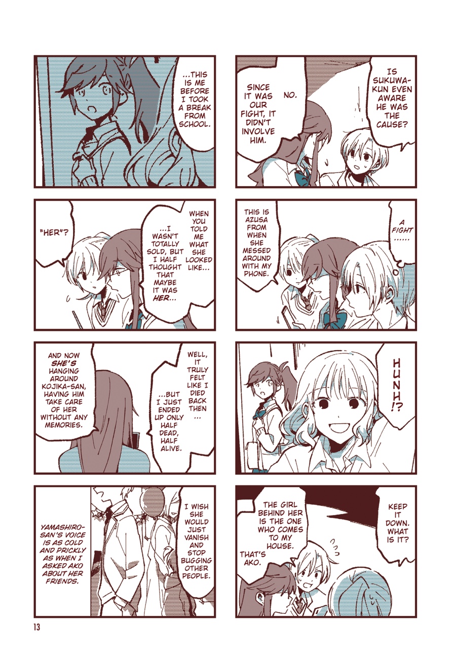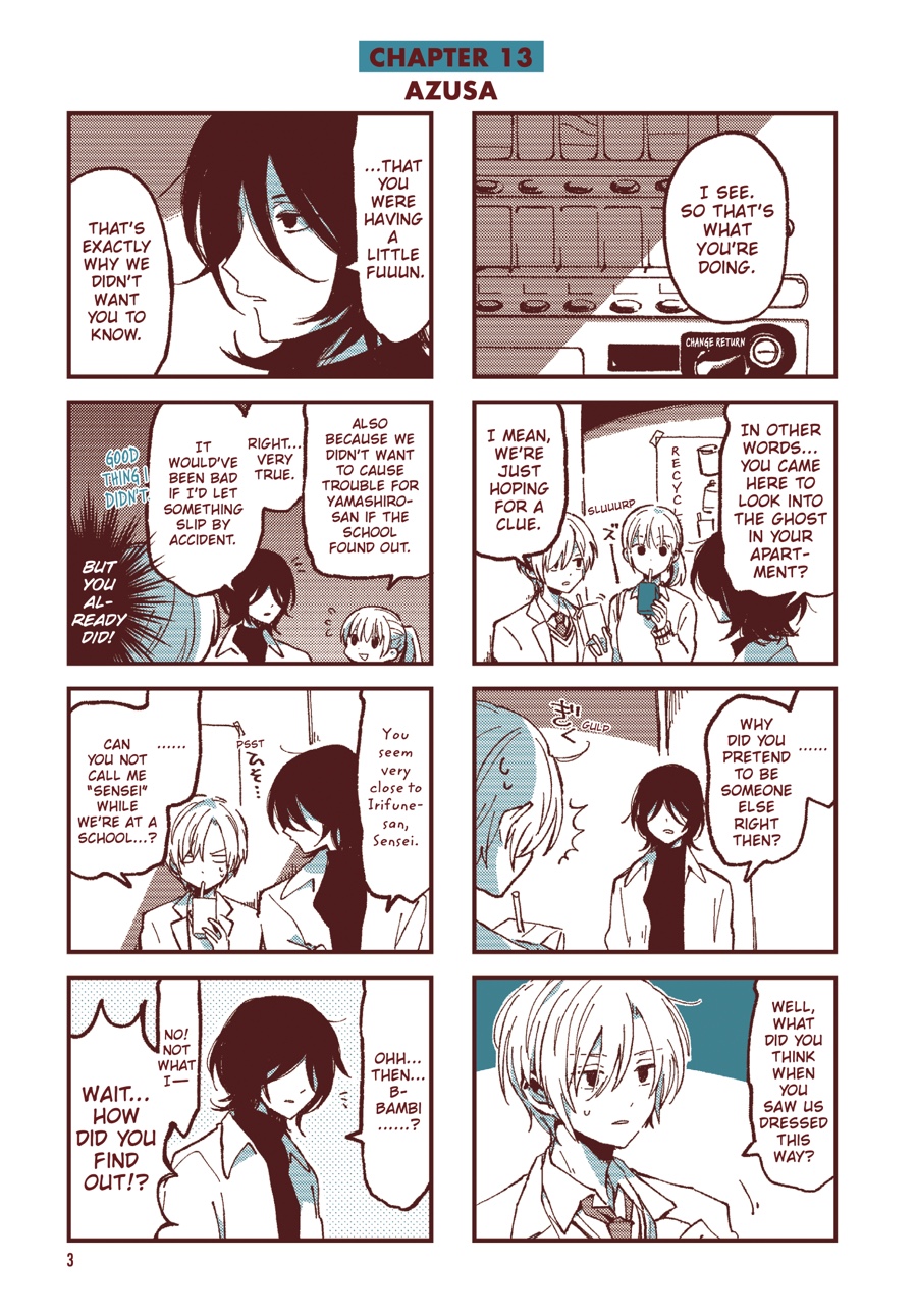 A ghost...or not a ghost? That is the question, and the entire reason an amateur novelist, a psychic, and a high school girl go traipsing around a culture festival. Once there, they discover the secret behind Ako’s existence! Or so they think... But life—and death—just isn’t that simple. As for the inhabitants of Bambi’s haunted apartment complex, the spookiness inherent in Ako’s existence begins affecting the world around them as well...