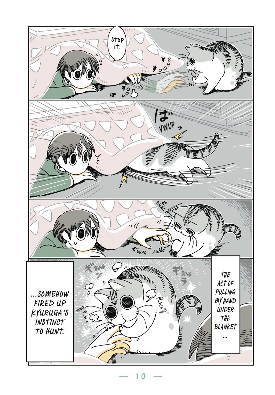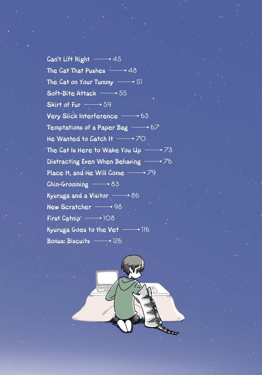 Fuuta’s daily life with his sister’s cat Kyuruga continues! Between all the different ways to pet a cat, the many methods a cat uses to ask for attention, and all the places a cat likes to sit, there’s always more for Fuuta to learn about living with a feline companion!