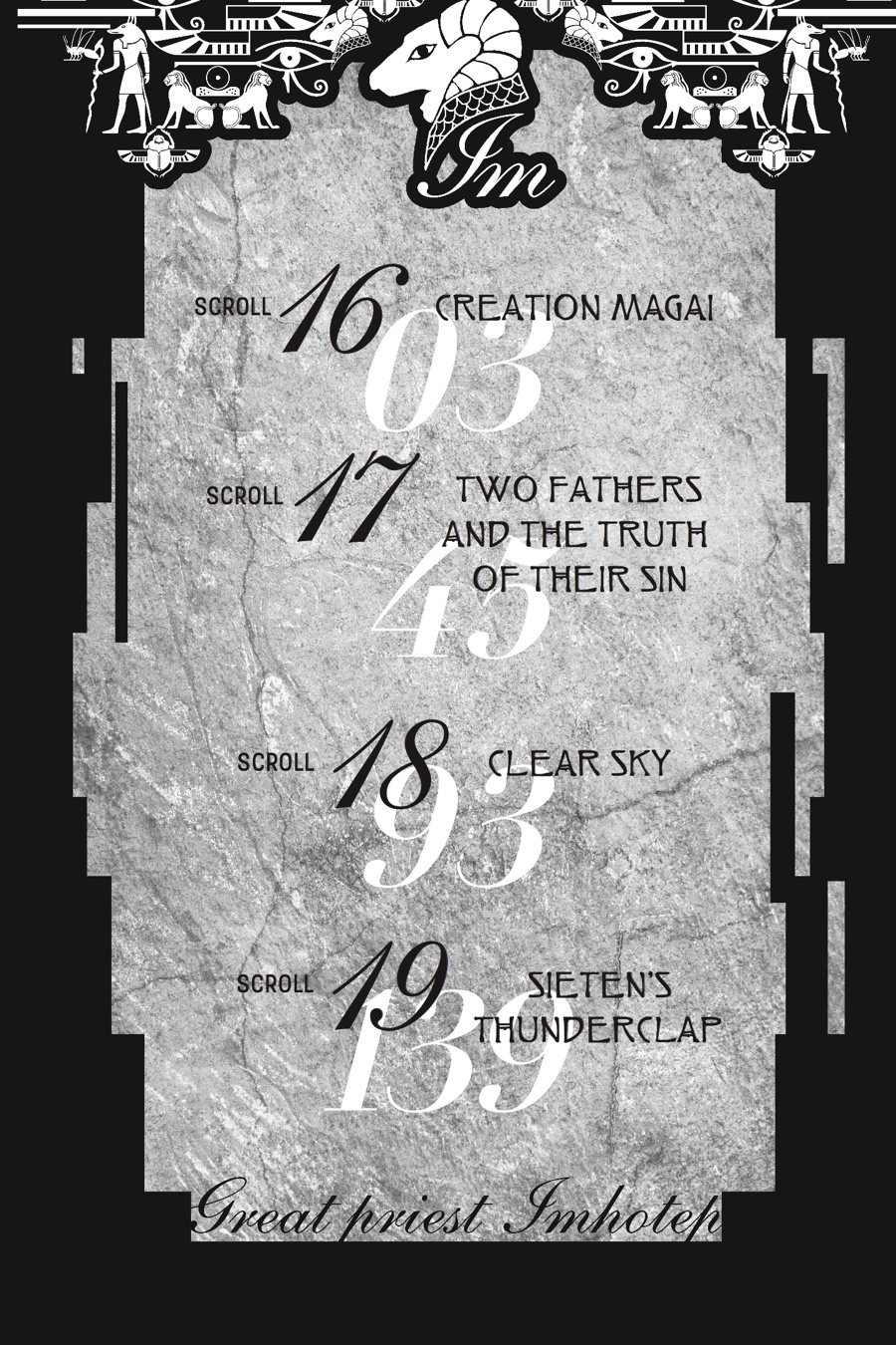 The ancient queen Cleopatra is after something hidden inside Chapter Chief Yata’s body, and it seems to be tied to the tragedy that took place at Harugo Misora’s family shrine fifteen years ago. Imhotep, Harugo, and their teammates must uncover the truth and thwart the queen’s plans before the past can repeat itself. Only this time, the danger is so great that even the gods themselves get involved...!