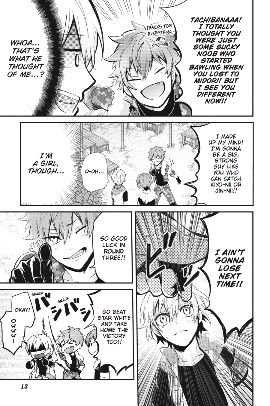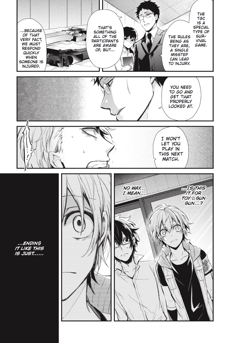 Toy*Gun Gun claims victory in their second match at the TGC! But when Matsuoka is told he must go to the hospital, their win may be short-lived, as their team would fail to meet the three-member requirement without him! Also off his game is the usually invincible Midori, who gets the wind knocked out of him by a vengeful figure from his past during Star White's second match. With both team leaders the worse for wear, will both Toy*Gun Gun and Star White be able to make it through to the next round, let alone the finals?!