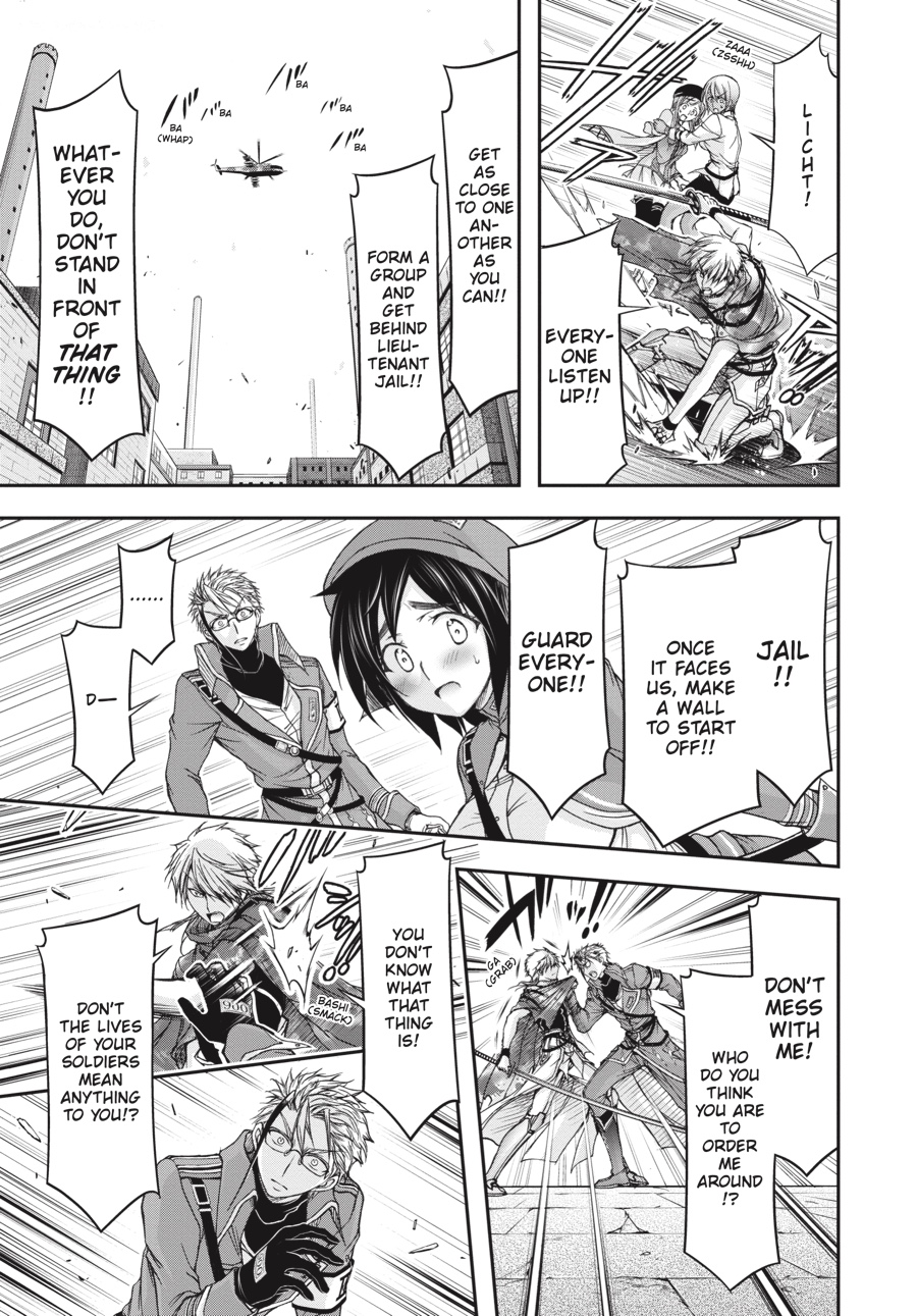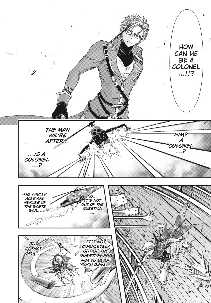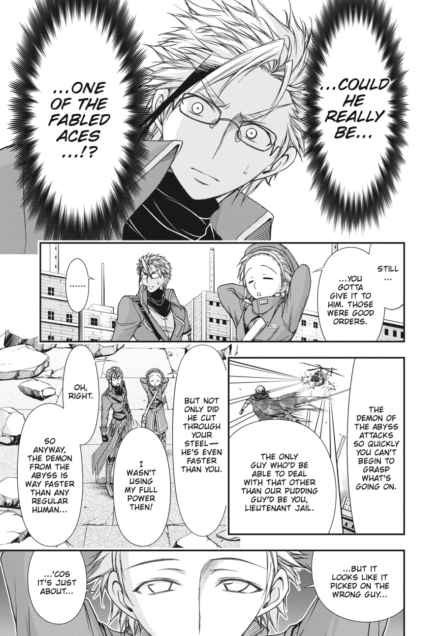 Licht and the gang come face-to-face with the deadly demon of the abyss—a modern-day military weapon of steel unlike anything they’ve seen before. Trapped by giant, weighty wings of metal and indiscriminate attacks from the sky, the fate of the town rests in the hands of the Ace of Flashing Strikes himself! But just as Licht prepares to subdue the destructive enemy, he’s greeted by a familiar face—a black-haired, trigger-happy soldier who’s also…an Ace?!