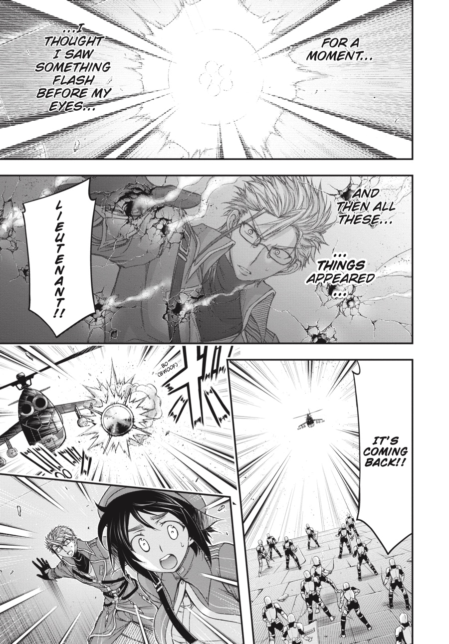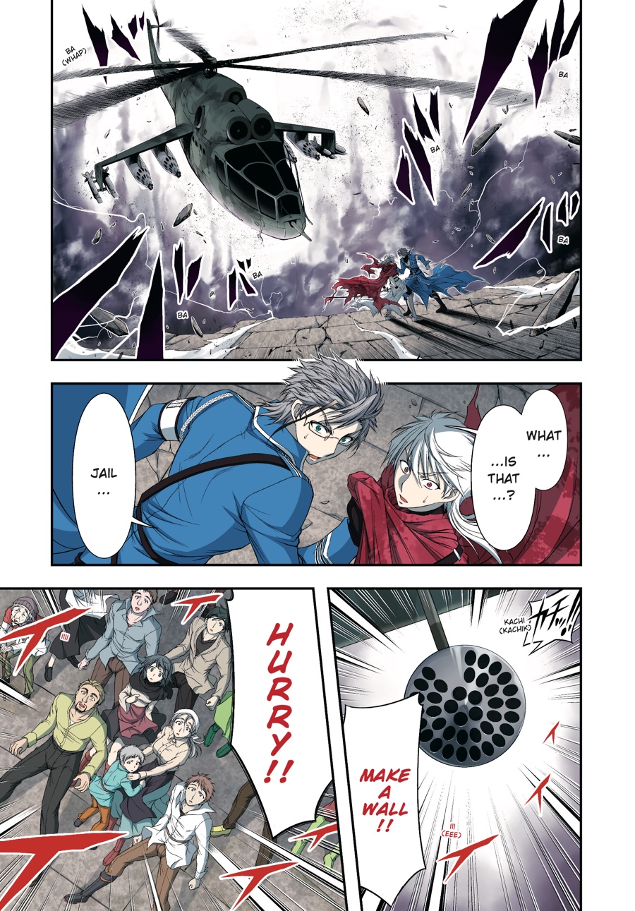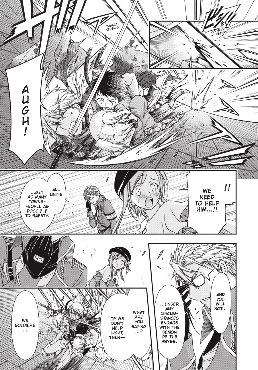 Licht and the gang come face-to-face with the deadly demon of the abyss—a modern-day military weapon of steel unlike anything they’ve seen before. Trapped by giant, weighty wings of metal and indiscriminate attacks from the sky, the fate of the town rests in the hands of the Ace of Flashing Strikes himself! But just as Licht prepares to subdue the destructive enemy, he’s greeted by a familiar face—a black-haired, trigger-happy soldier who’s also…an Ace?!