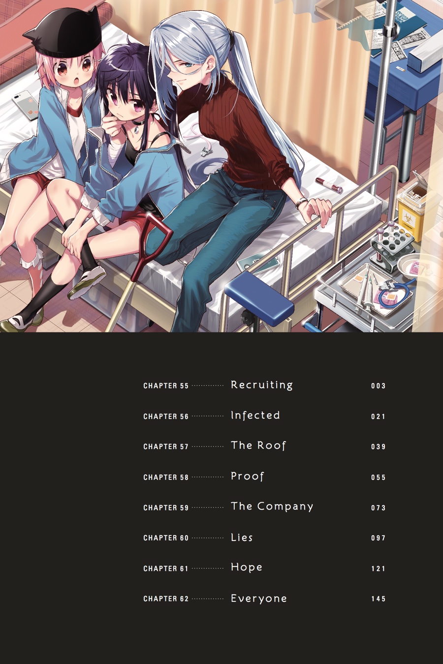 The infection continues to spread, and Kurumi is humanity's only hope to repel it! The Randall Corporation is the girls'next destination, and it's their best chance to find the equipment they need to make a serum that will combat the virus. But once they get there, things go from bad to worse in the blink of an eye, and their priorities will have to change...