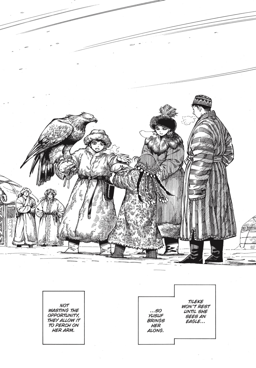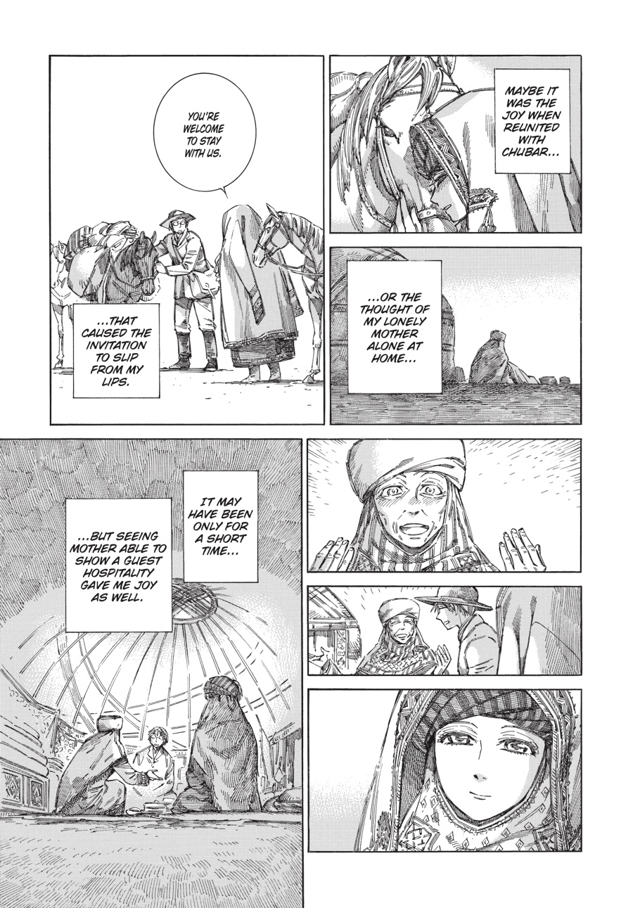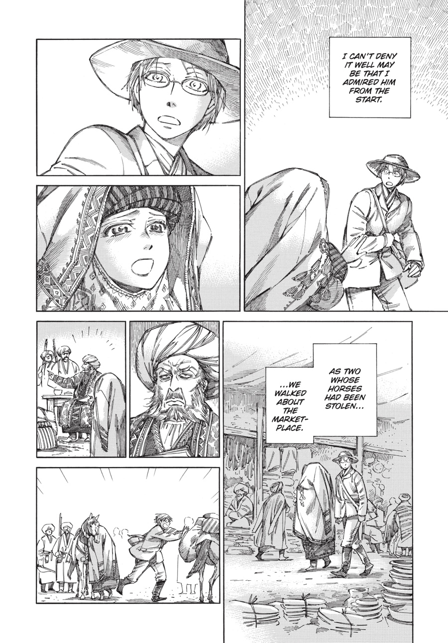 Acclaimed creator Kaoru Mori’s tale of life on the nineteenth century Silk Road continues. Smith is shocked when, upon arriving in Ankara, he is met by Talas, the solitary herder who welcomed Smith into her home in the early days of his journey. Whatever feelings may have passed between them at that time were soundly dashed by Talas’s uncle, whose controlling influence and deceit even landed Smith in prison! But Talas has since resolved to follow her heart and boldly throw in her lot with Smith whatever the risks. When Smith sets out once again from Ankara—new camera in tow—he will be faced with a decision. Will Talas join the party as mere traveling companion, or as something more…? Crafted in painstaking detail, Ms. Mori’s pen breathes life into the scenery and architecture of the period in this heartwarming, slice-of-life tale that is at once wholly exotic yet familiar and accessible through the everyday lives of the characters she has created.