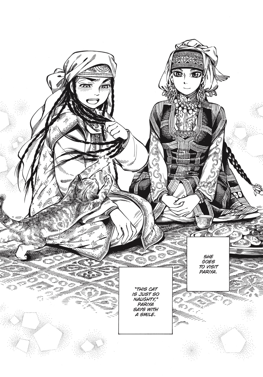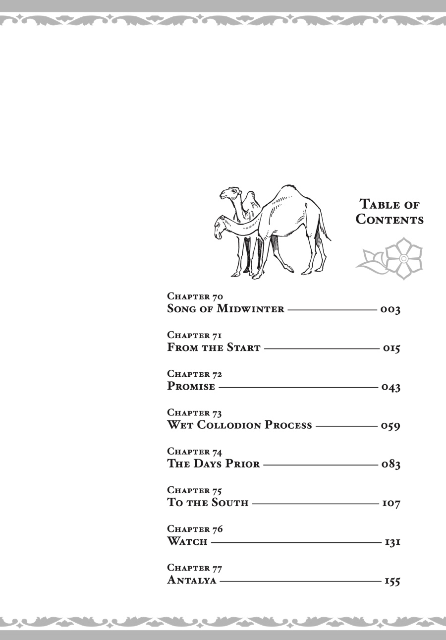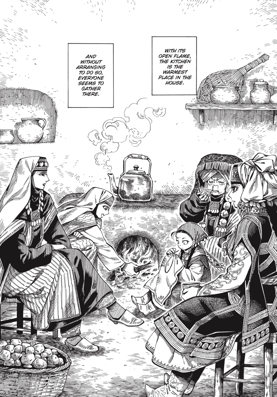 Acclaimed creator Kaoru Mori’s tale of life on the nineteenth century Silk Road continues. Smith is shocked when, upon arriving in Ankara, he is met by Talas, the solitary herder who welcomed Smith into her home in the early days of his journey. Whatever feelings may have passed between them at that time were soundly dashed by Talas’s uncle, whose controlling influence and deceit even landed Smith in prison! But Talas has since resolved to follow her heart and boldly throw in her lot with Smith whatever the risks. When Smith sets out once again from Ankara—new camera in tow—he will be faced with a decision. Will Talas join the party as mere traveling companion, or as something more…? Crafted in painstaking detail, Ms. Mori’s pen breathes life into the scenery and architecture of the period in this heartwarming, slice-of-life tale that is at once wholly exotic yet familiar and accessible through the everyday lives of the characters she has created.