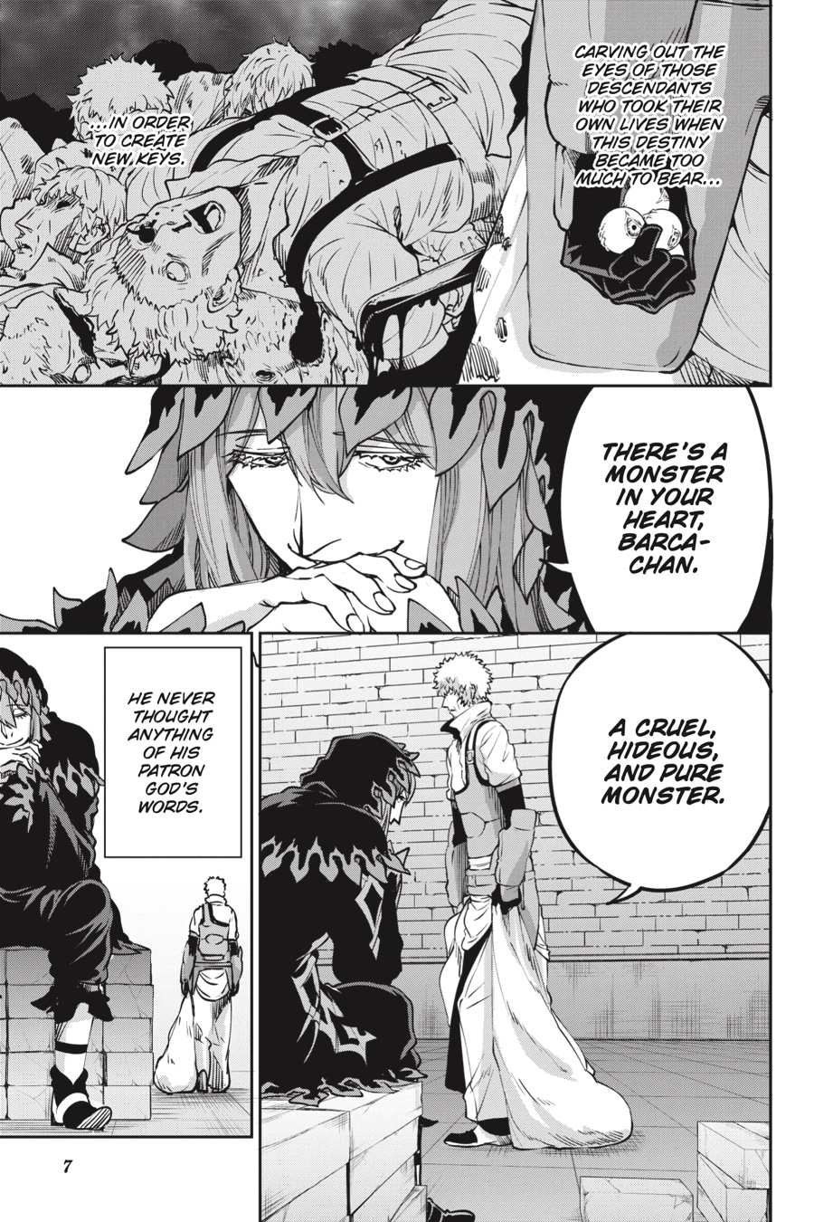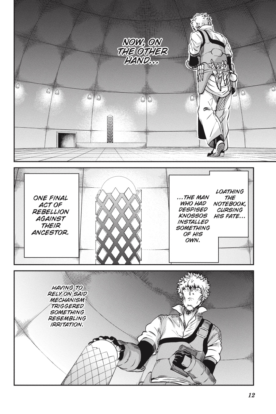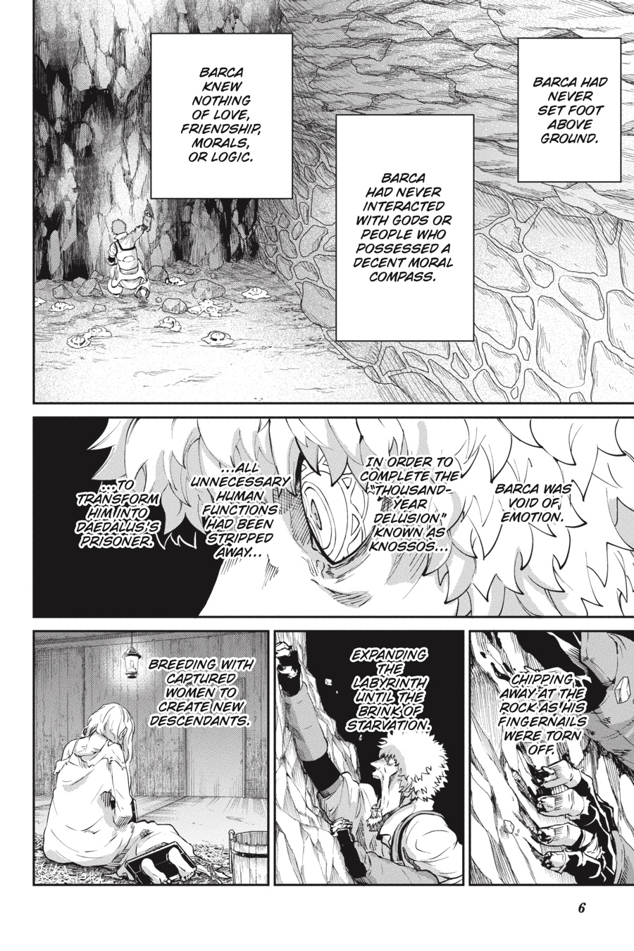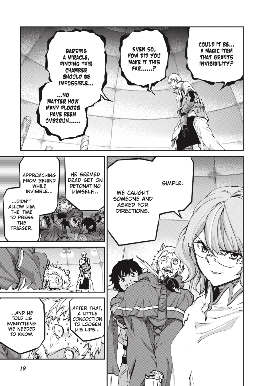 Barca, who’s been cornered by Loki Familia, counterattacks with Destruction, transforming into a monster in the process! Finn and the others are helpless in the face of the beast born from Daedalus’s obsession, which specializes in deadly curses... Meanwhile, Dea Saint Amid splits from the group pursuing Thanatos as she works to dispel the hexes, but how will she fare without Loki Familia to back her up?
