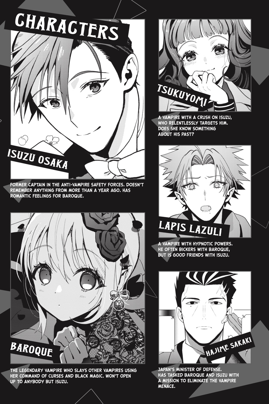 Baroque’s curses sweep across Tokyo as the large-scale vampire extermination commences. Merciless monsters across the city fall one by one, and it seems the strategy is a success…until the arrival of Tsukuyomi, a deadly vampiress with a mysterious power over Isuzu. Mad with love, she seeks to steal him away—much to the irritation of Baroque and Lapis. With vampires laying claim to Isuzu on all sides, can he fifind a way to disentangle himself from this blood-soaked love triangle?