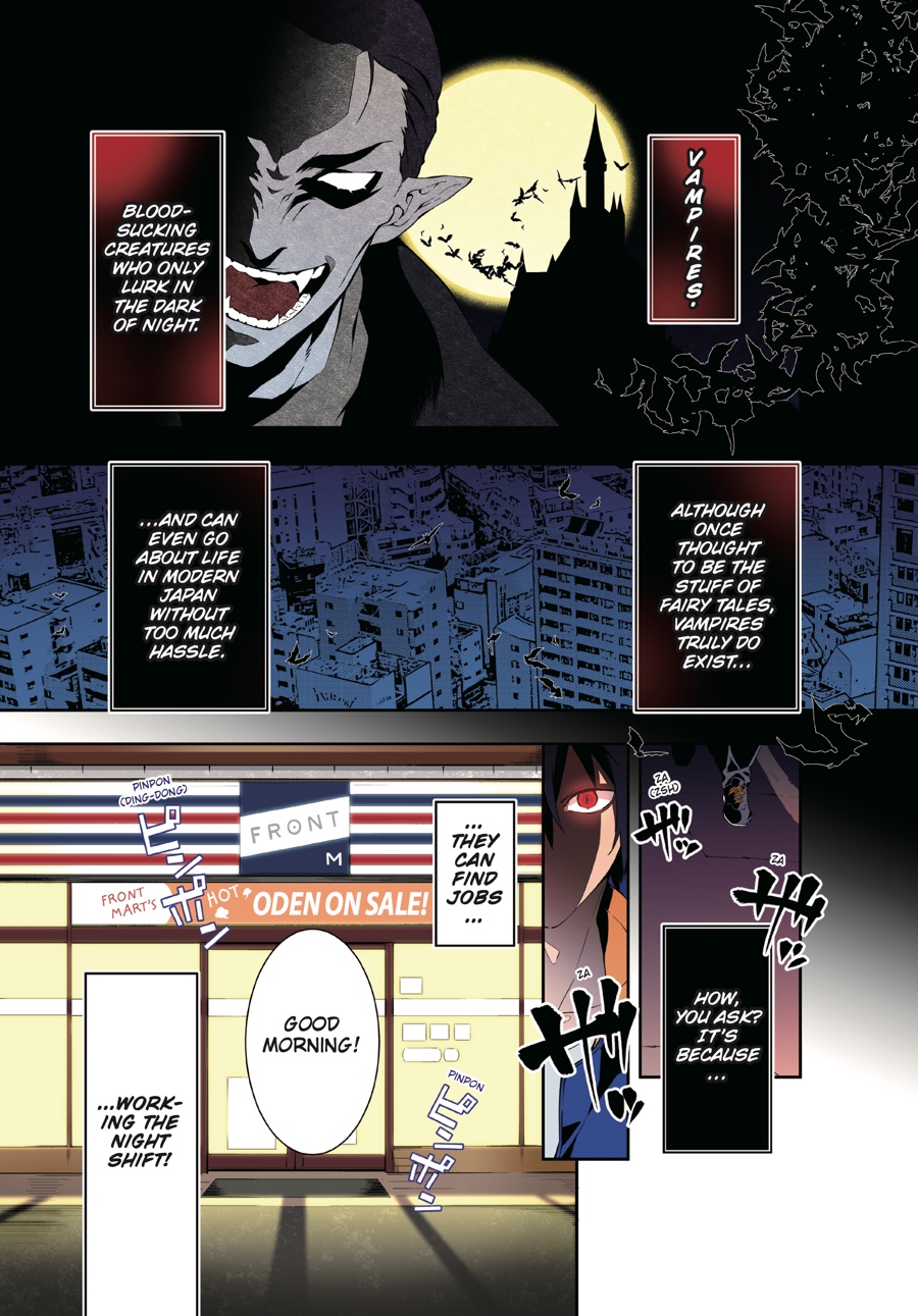 Vampires, who cannot be exposed to sunlight, have been able to integrate into modern society by only going out at night. Yura Toraki is a vampire who works the graveyard shift at a convenience store in Ikebukuro. One day, he happens to save a woman named Iris, who turns out to be a member of an order of vampire exterminators! Before he knows it, Yura is living in the same apartment as his should-be nemesis!