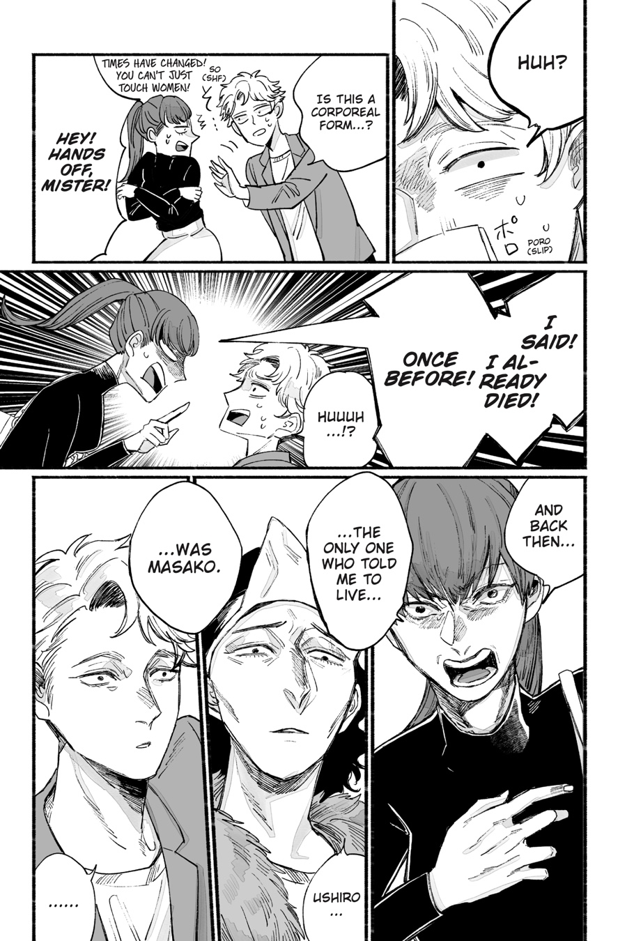 Brokenhearted office worker Ushiro and her ghostly companion, Masako, have gotten a talking to from Shuushaku Hashiba, an exorcist who has seen human relationships with even the kindest spirits go awry…But who’s gonna pay attention to sad backstories and stern scoldings with all these absolute a-holes to curse?! So Ushiro and Masako carry on with their spectral slapstick, and Ushiro continues to suffer strange sensations and changes…But it just might be worth it, because they’ve got a big lead on Yuu-senpai, the philanderer who was their real target from the start! Thy grudge shall be avenged…! ♡