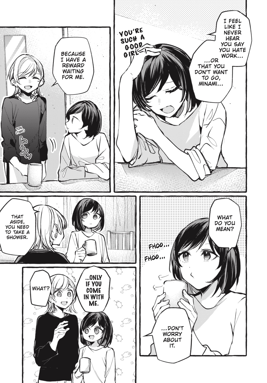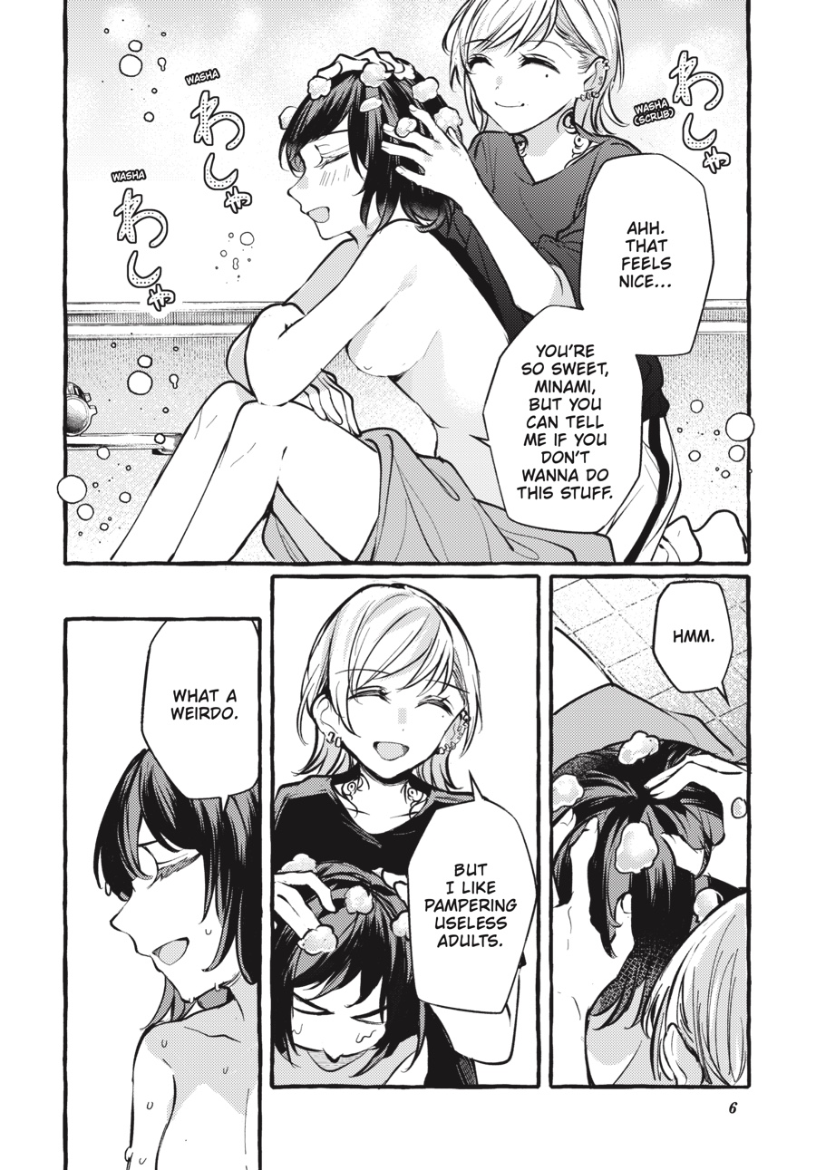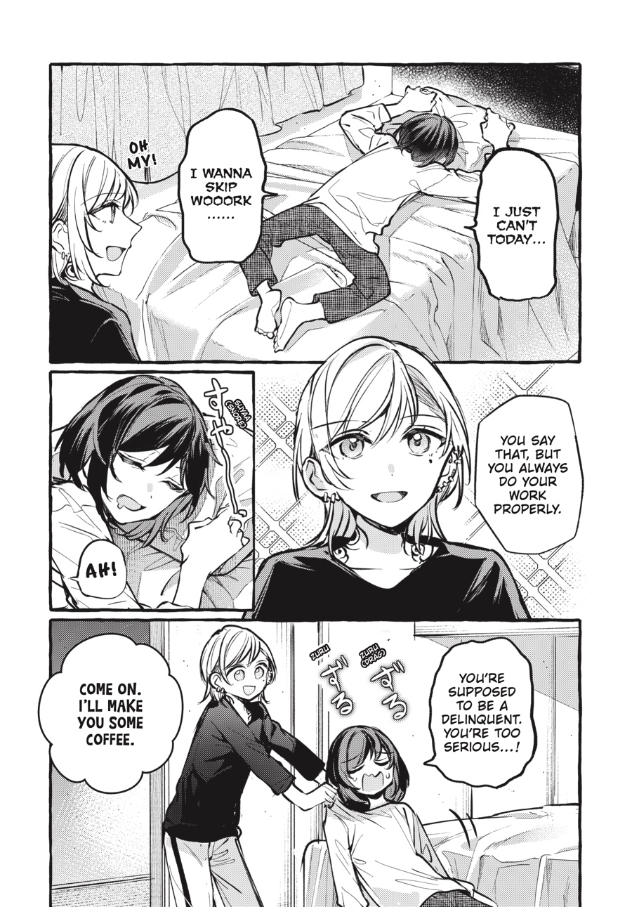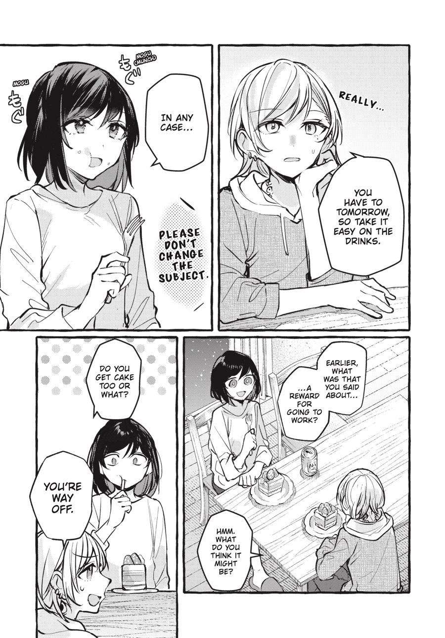 Memories from Shizuku’s troubled past have gotten between her and Saori. They share too much. Their hopeless loves, the ways they push each other away when they need companionship the most, their anxieties about replacing and being replaced… But maybe, if Saori swallows her pride and chases after Shizuku, they can make up by sharing two more things—a kiss and a confession!