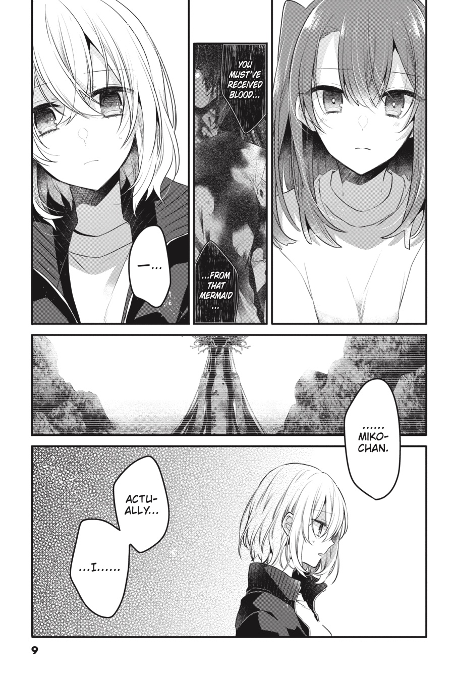 Haunted by questions after her encounter with Ayame, Hinako is determined to get answers. Why does it feel like she’s seen Shiori’s true form before? And what did Ayame mean when she said Hinako must’ve received a mermaid’s blood? The truth of what happened on that fateful day just might unravel the promise binding her and Shiori together… “Do you really want to eat me?”