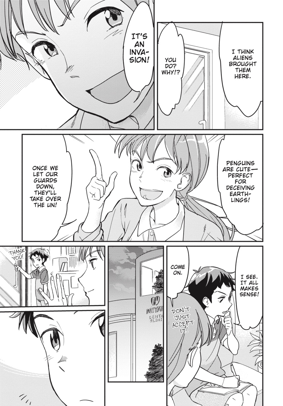 One day, penguins start appearing in the suburban town that fourth-grader Aoyama calls home. Nobody knows where they came from or where they’re going, but one thing’s for sure—the lady at the dentist and her strange powers have something to do with it. With his research notebook in hand, Aoyama sets out to get to the bottom of this mystery… The acclaimed novel by Tomihiko Morimi—which inspired a beautiful animated film—is now available in manga form! Watch the adorable penguins come to life in this oversized omnibus edition!