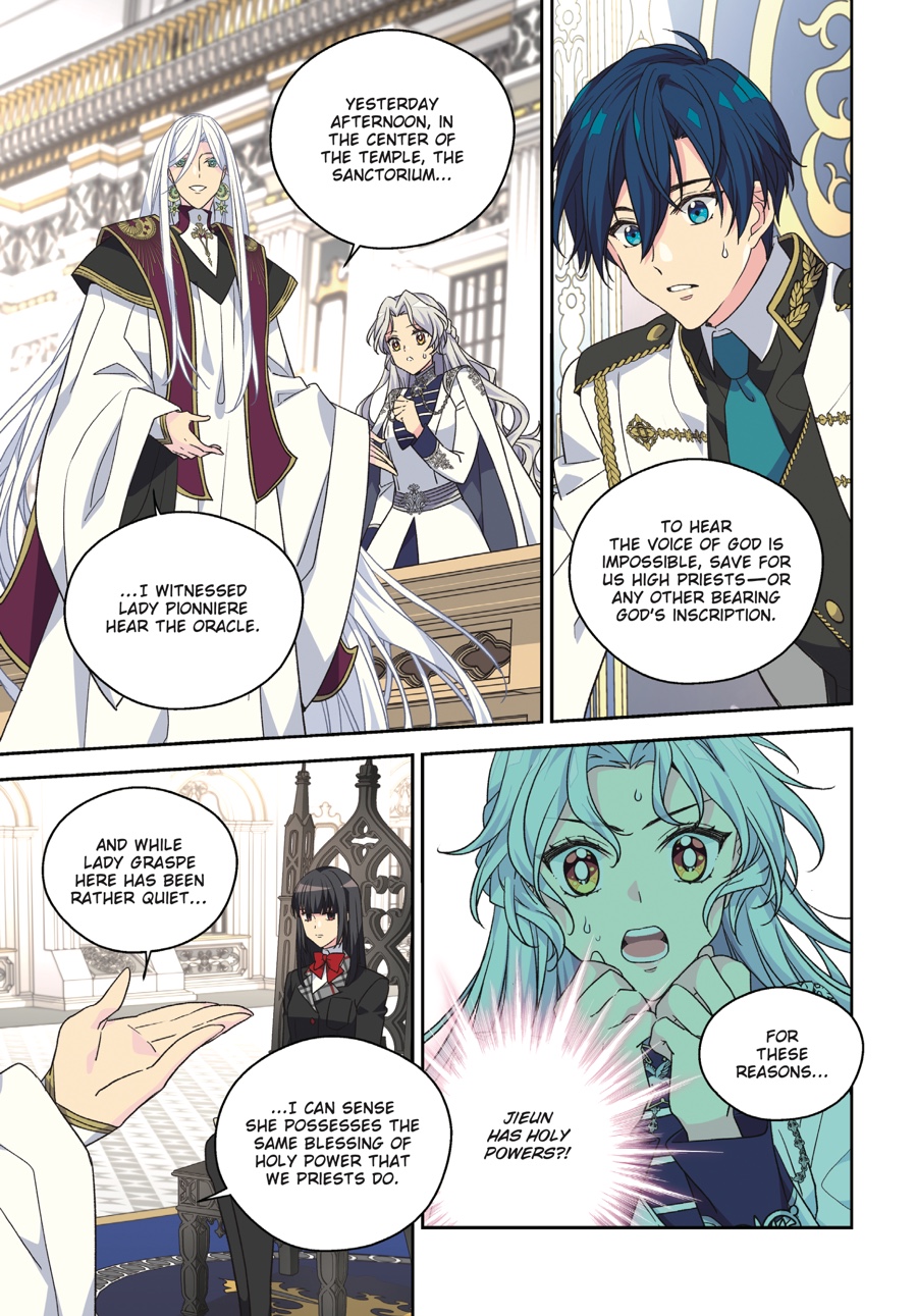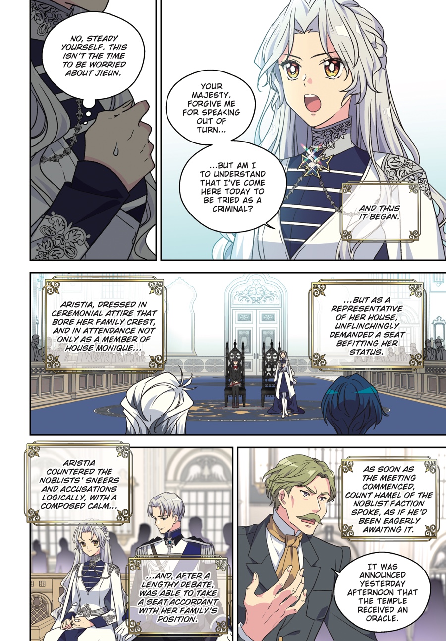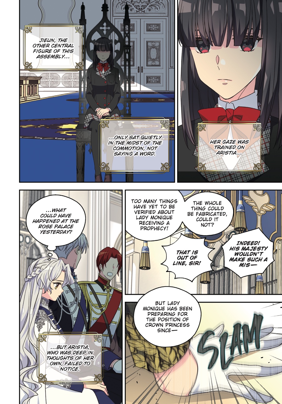 The moment Aristia was dreading is finally here--Jieun has arrived! As politics pit the two against each other yet again, she soon realizes that this Jieun is very different from the one she remembers . In order to protect herself and those dear to her, Tia hardens her resolve to walk the path of heir to House Monique …until long-kept secrets are brought to light , calling her legitimacy as crown princess candidate into question! While the noble faction plans their next move with an openly hostile Jieun as their new pawn, Tia is reminded that within the palace, there is no room for mercy.