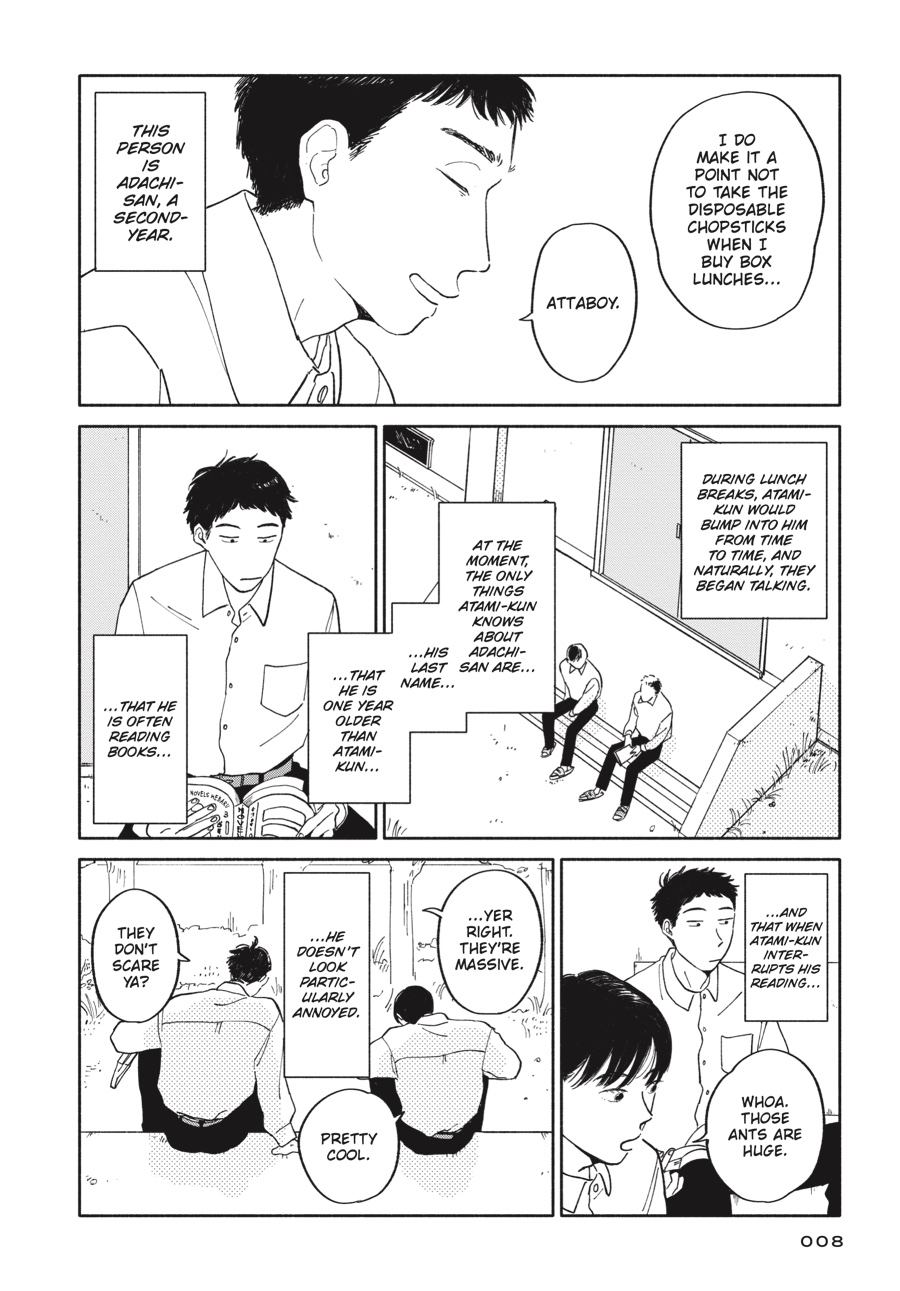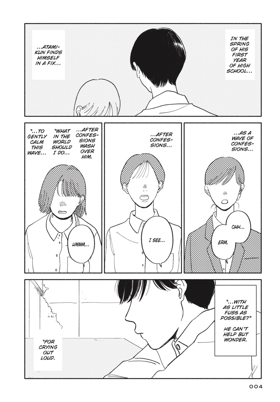 Atami-kun has a gorgeous face. A romantic heart. And a steady stream of girls asking him out at every opportunity. Which is all wonderful, except…he likes guys, not girls. An upperclassman who enjoys reading, the long-haired boy who sits in front of him, the cute worker at the flower shop—each love fleeting but sincere, and just a bit complicated. Each bringing its own joy and melancholy. My oh my…even for Atami-kun, life truly isn’t easy.