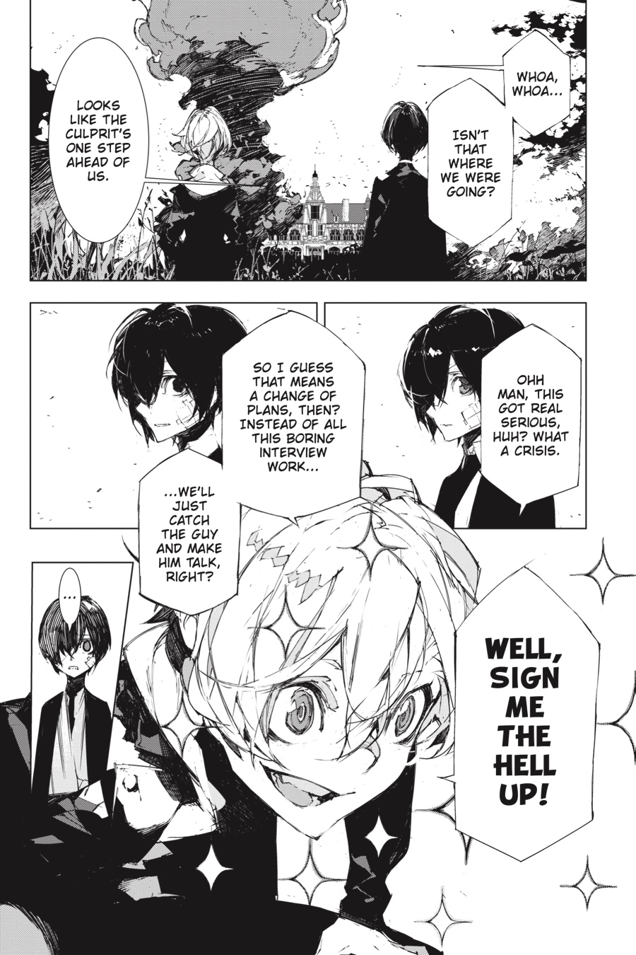 At the behest of Mori, the boss of the Port Mafia, a young Dazai and Chuuya launch their investigation into the rumors of the previous boss’s revival, as well as the mysterious “Arahabaki” that’s somehow involved. The two’s mission carries the utmost importance, for if the truth about Mori’s predecessor gets out, the streets of Yokohama will run red with blood. Randou, one of the Mafia’s subexecutives, is said to have witnessed the supposed god, but where will his information lead?