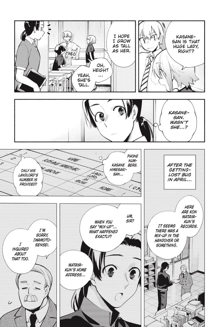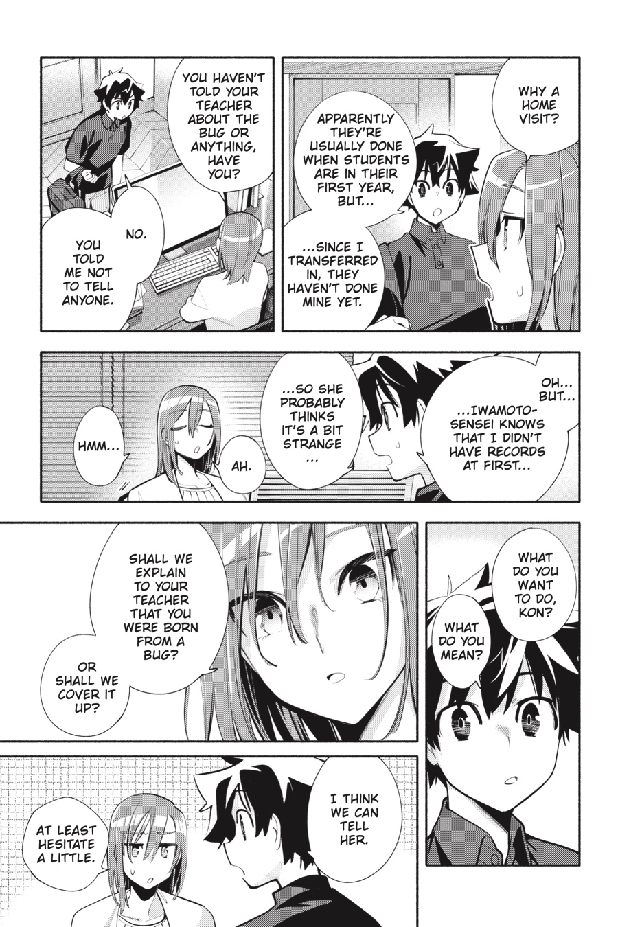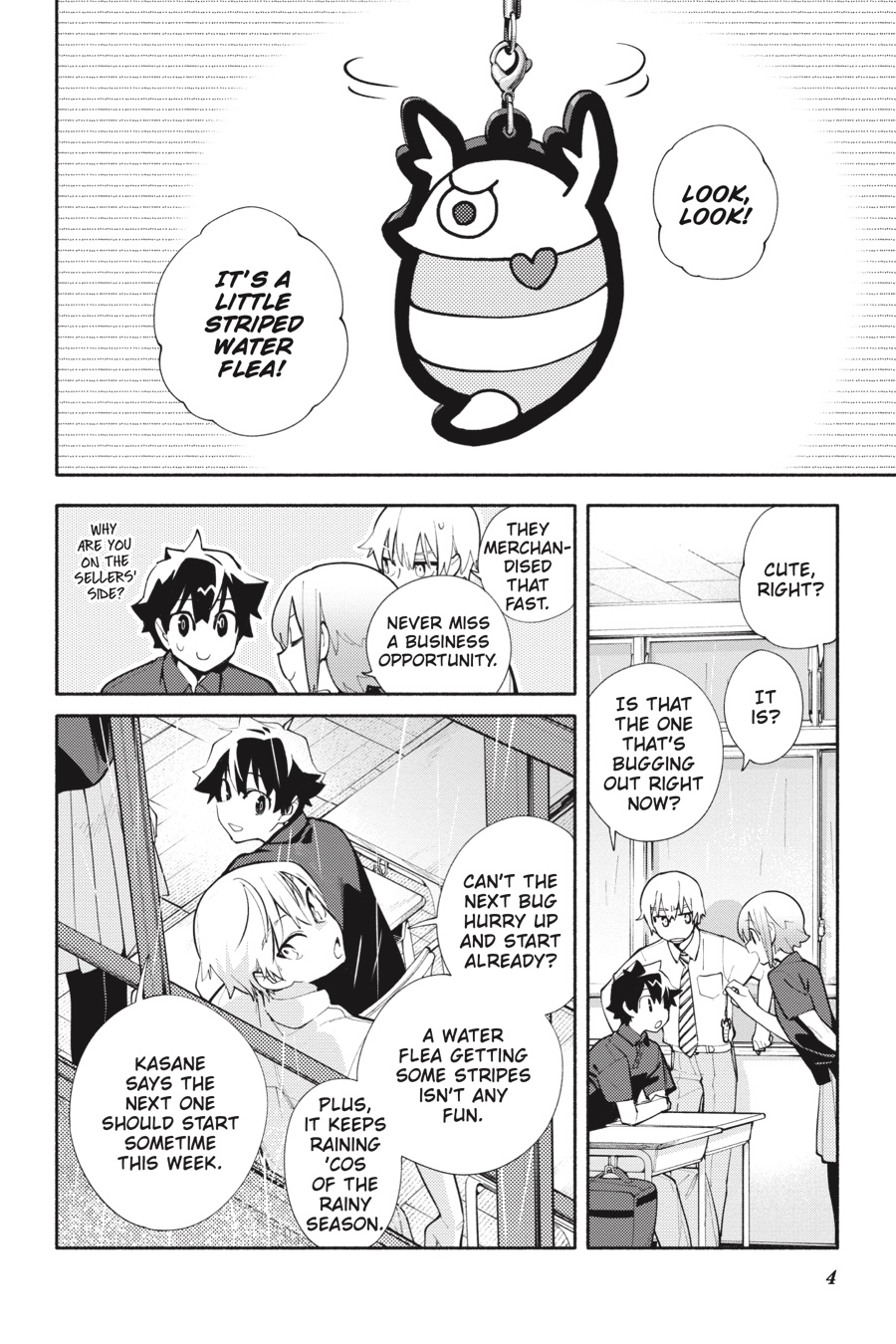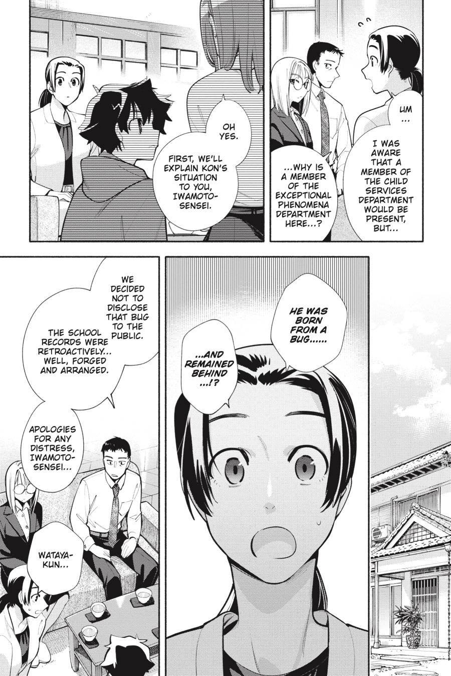 Middle schooler Kon and his landlord, Kasane, live in a world where periodic exceptional phenomena, more commonly known as bugs, occur all around them. Between turning people invisible and suspending time, astonishing feats of nature are nothing new, but Kon’s identity as a bug-made human might just take the cake! With his unusual circumstances bringing up a myriad of unanswerable questions, Kon and Kasane decide to divulge his secret to his teacher—which leads Kon to wonder whether his friends would be accepting of the truth…