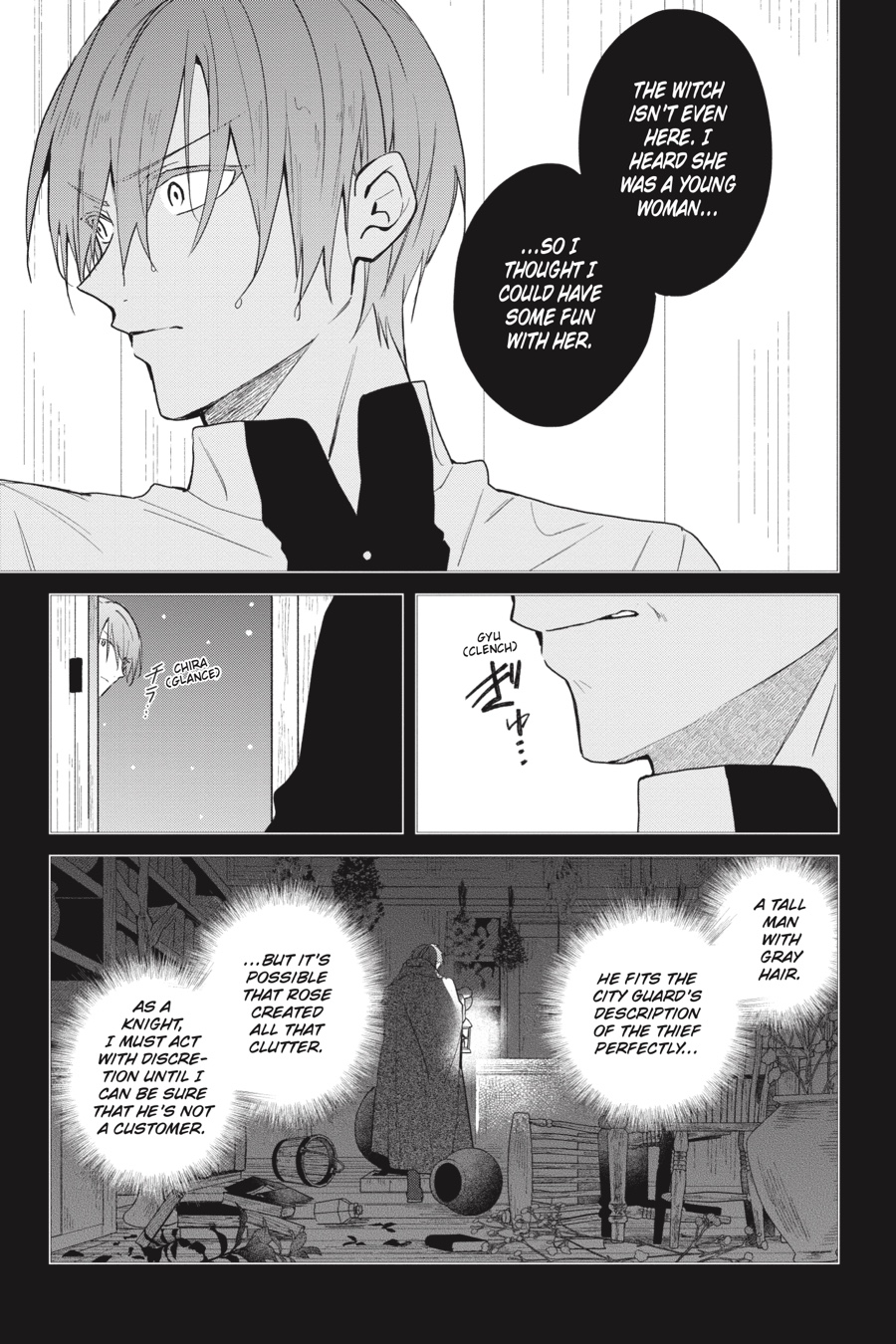 “I never thought there would come a day when you would look at me like that.” It has been one month since Harij rescued Rose from the thief who broke into her home, and the two have had no contact since—until a woozy Harij comes stumbling through the hermitage’s door! It turns out he accidentally consumed the love potion he ordered, and is now drunk with lovesickness. In spite of Rose’s worries, the flustered witch secretly relishes in his affection, knowing this dream come true will end when the potion wears off…only for Harij to suddenly propose to her?!