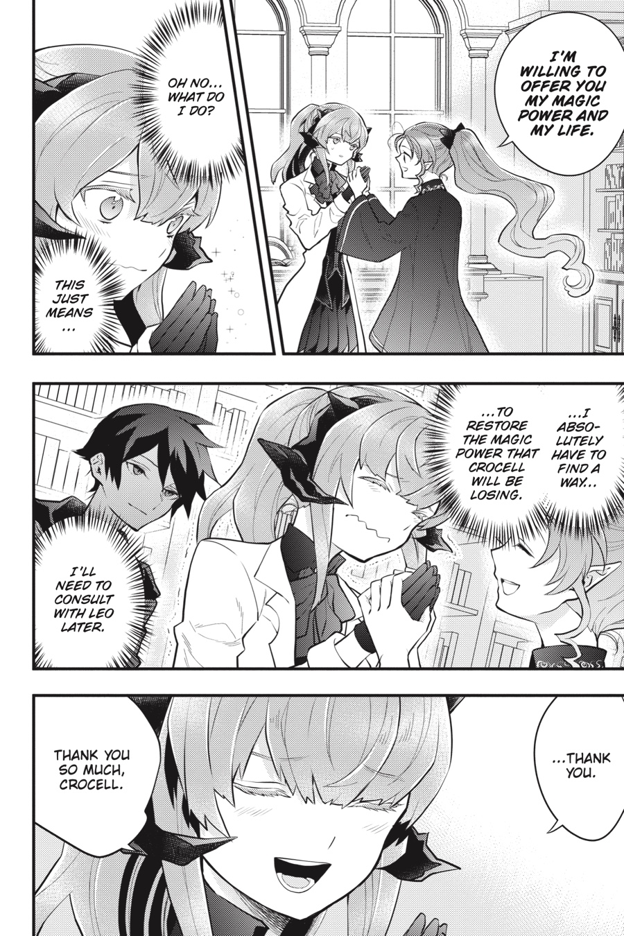 To take down Undine, the raging spirit polluting the demon realm’s waters, Leo and Echidna must enlist the help of the priestess Crocell. There’s just one problem—Crocell absolutely refuses to cooperate! As the former hero and the Demon Queen try their hand at negotiations, Echidna discovers just how important it is for a ruler to love her people…and why, perhaps, she—not Leo—is the one who belongs on the throne. Will Echidna regain her confidence in time to carry out their plan?! The fate of the demon realm rests on this final, epic confrontation!