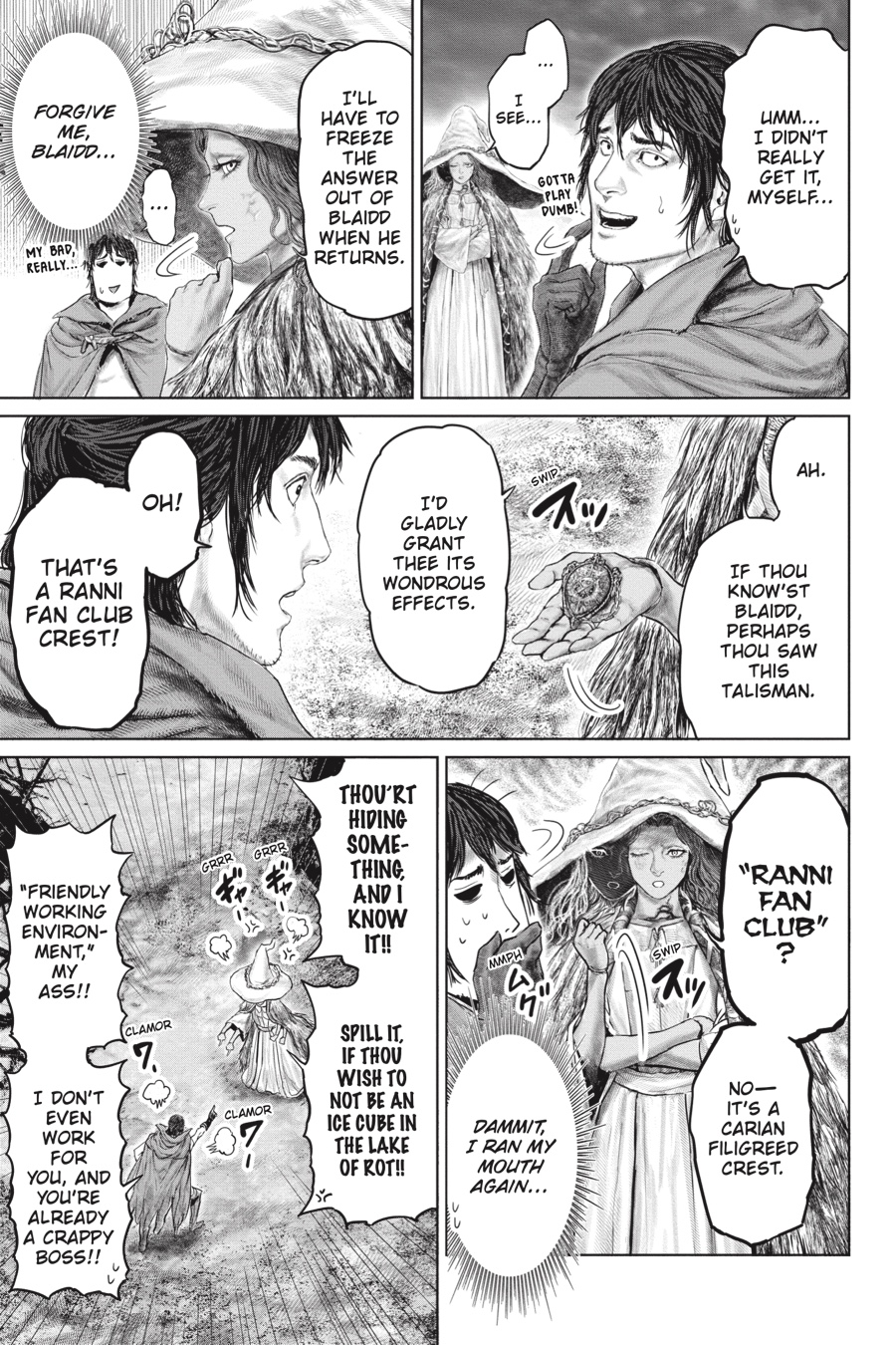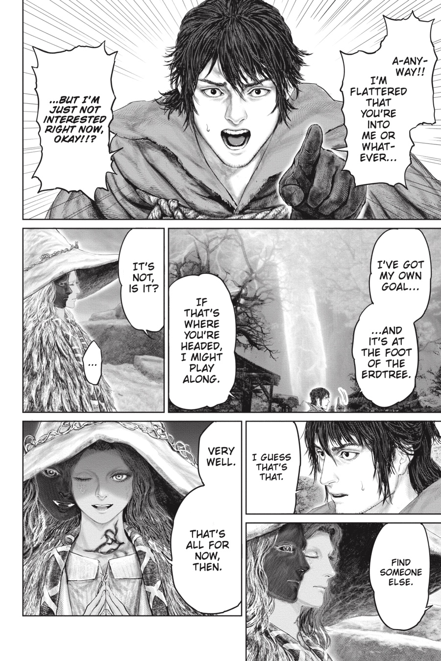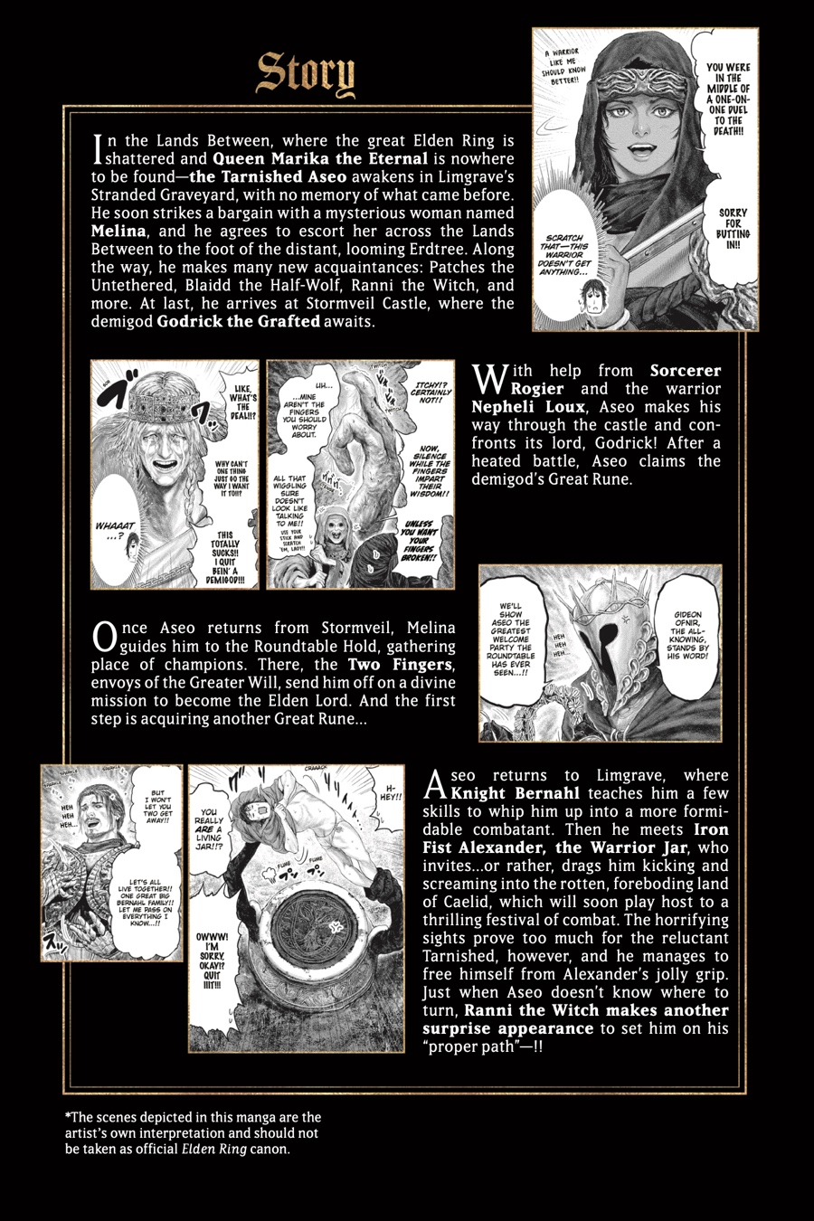 During a terrifying trip into Caelid, Aseo the Tarnished runs into Ranni the Witch—the idol of the Ranni Fan Club! He follows her advice and heads to Liurnia of the Lakes in search of the Great Rune at the Academy of Raya Lucaria. Encountering new people with various lessons to impart, Aseo also reunites with an old friend (?) who has a tip on how to get into the academy! Unfortunately for him, this means facing off against a formidable foe that’s as shiny as it is scaly. Will the life-and-death struggle finally stir Aseo’s hidden potential? And what’s waiting for him inside Raya Lucaria if he gets there?!