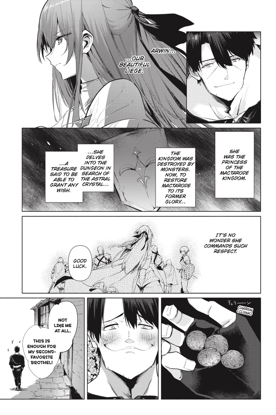 While the beautiful princess Arwin selflessly delves into the dungeon searching for a way to save her kingdom, Matthew aimlessly wastes his days (and her money) on brothels and booze. Causing trouble wherever he goes on the rough streets of the Dungeon City, Matthew is scorned by everyone—except for Arwin. When it comes to her, Matthew’s loyalty may run far deeper than his deplorable reputation lets on. Could his attitude be nothing more than a facade to hide the true lengths he would go to for the princess…?