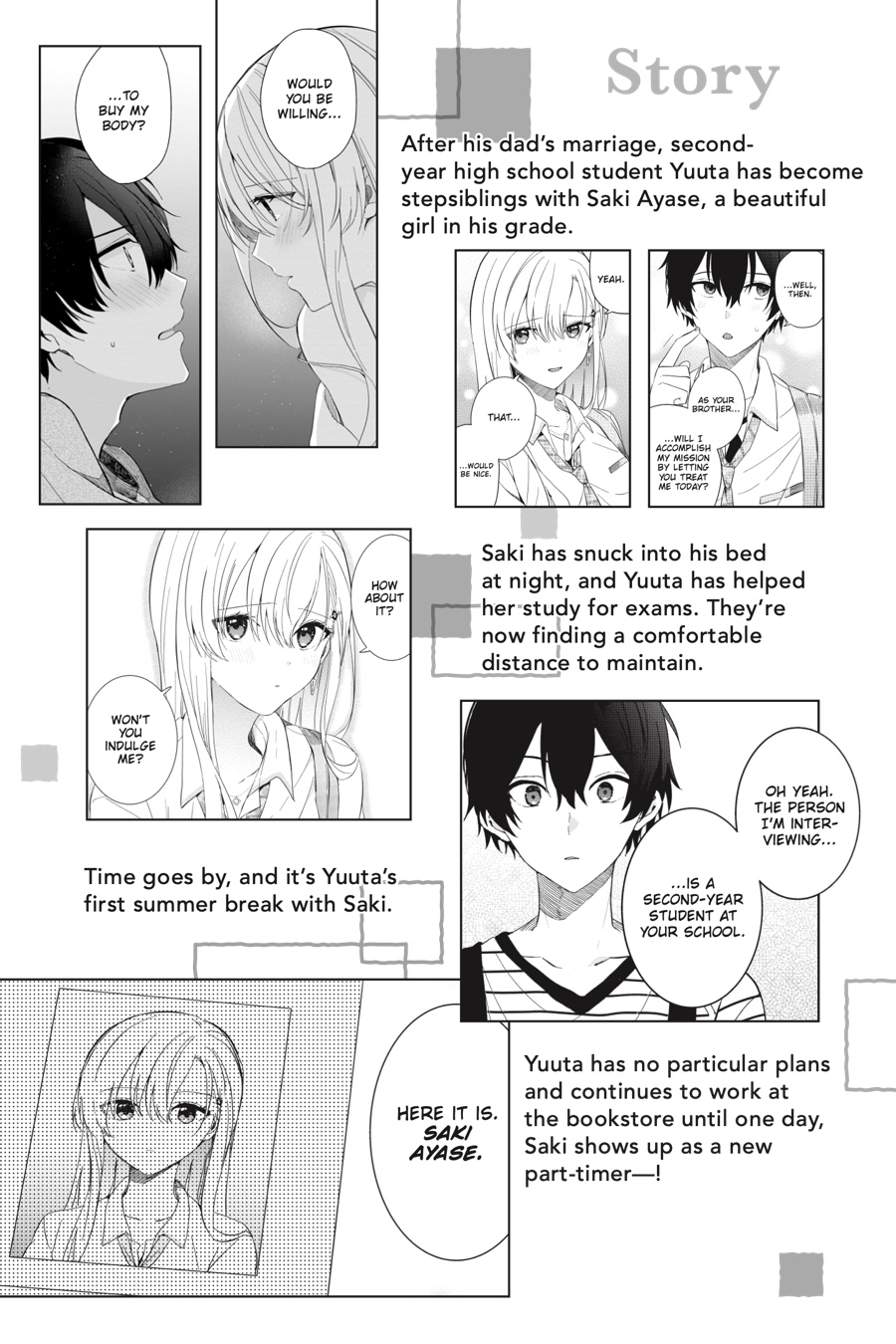 It’s Yuuta and Saki’s first summer break as stepsiblings. Now that Saki has gotten a job at the bookstore where Yuuta works, they’ve ended up spending more time together, but she seems really stressed. When she even turns down an invitation to go to the pool with everyone, Yuuta decides to figure out what’s going on and help her relax. In the process, he finds himself thinking of her in ways that a brother shouldn’t…