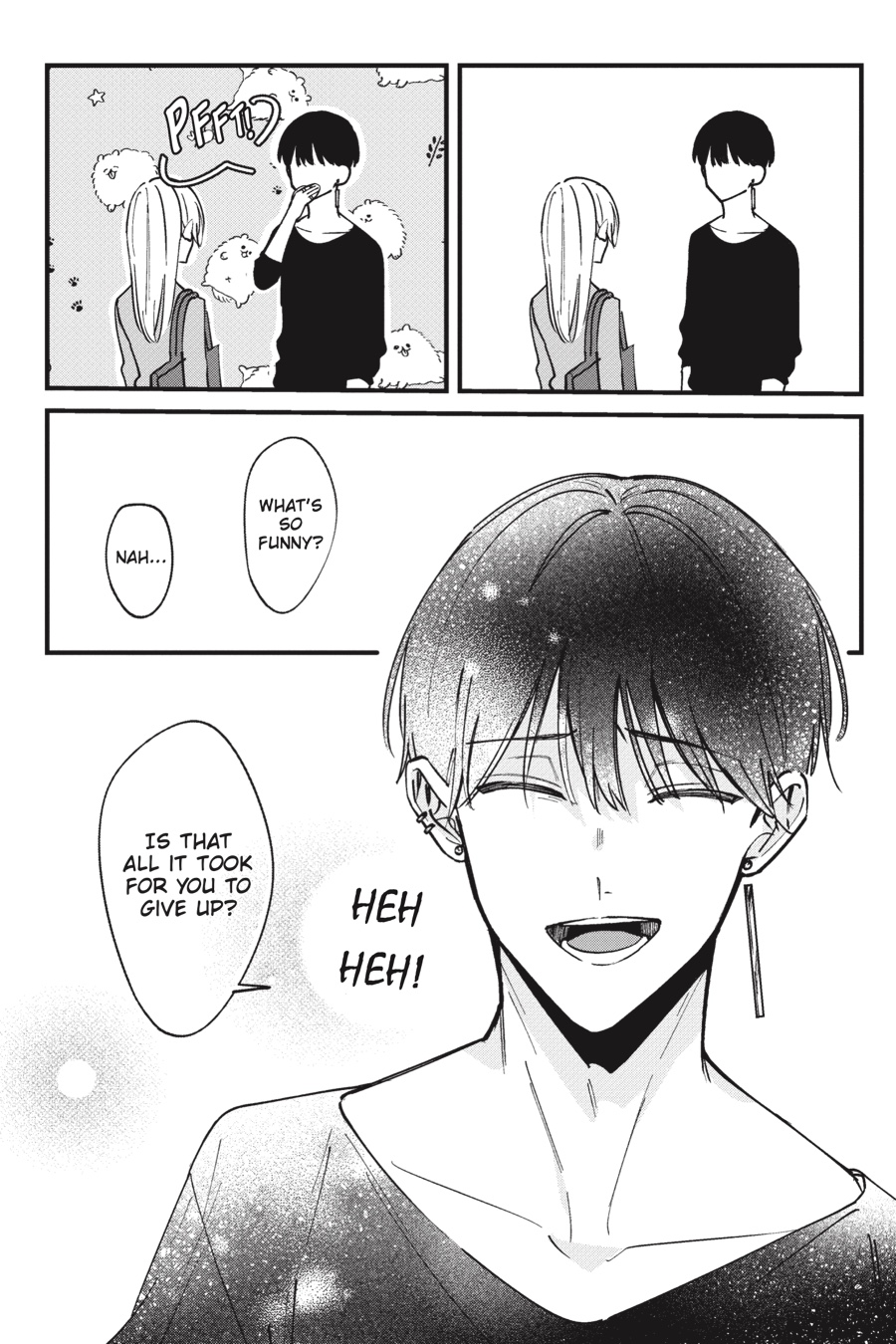 I saw the face he was making—he’s definitely carrying a torch for you. So you should tell him you’re already spoken for… Plan A—failure. Plan B—total disaster. It’s like the universe is playing a sick cosmic joke on Kaho. After all, even though she did kind of sleep with her devilishly handsome drinking buddy, Akira, she’s already determined that he is 100 percent absolutely NOT boyfriend material. So obviously, she should pretend it never happened and avoid him at all costs. But since he just keeps popping up everywhere Kaho looks, she can’t seem to catch a break! Worse, she’s so busy thinking about him that she doesn’t have the mental capacity to notice the attentions of a certain charming, considerate coworker who’s been inviting her out…