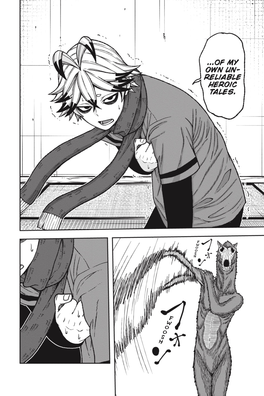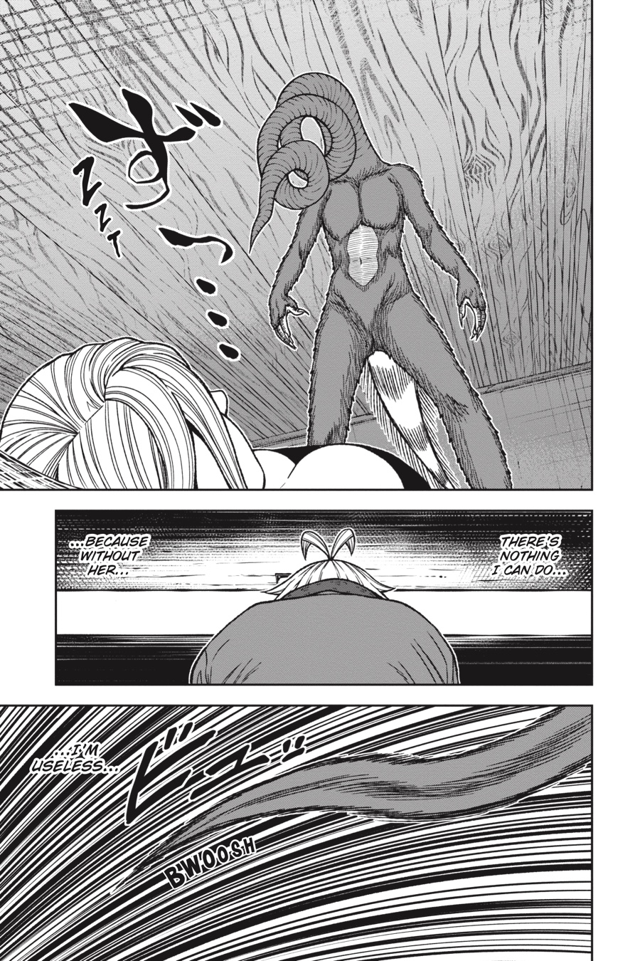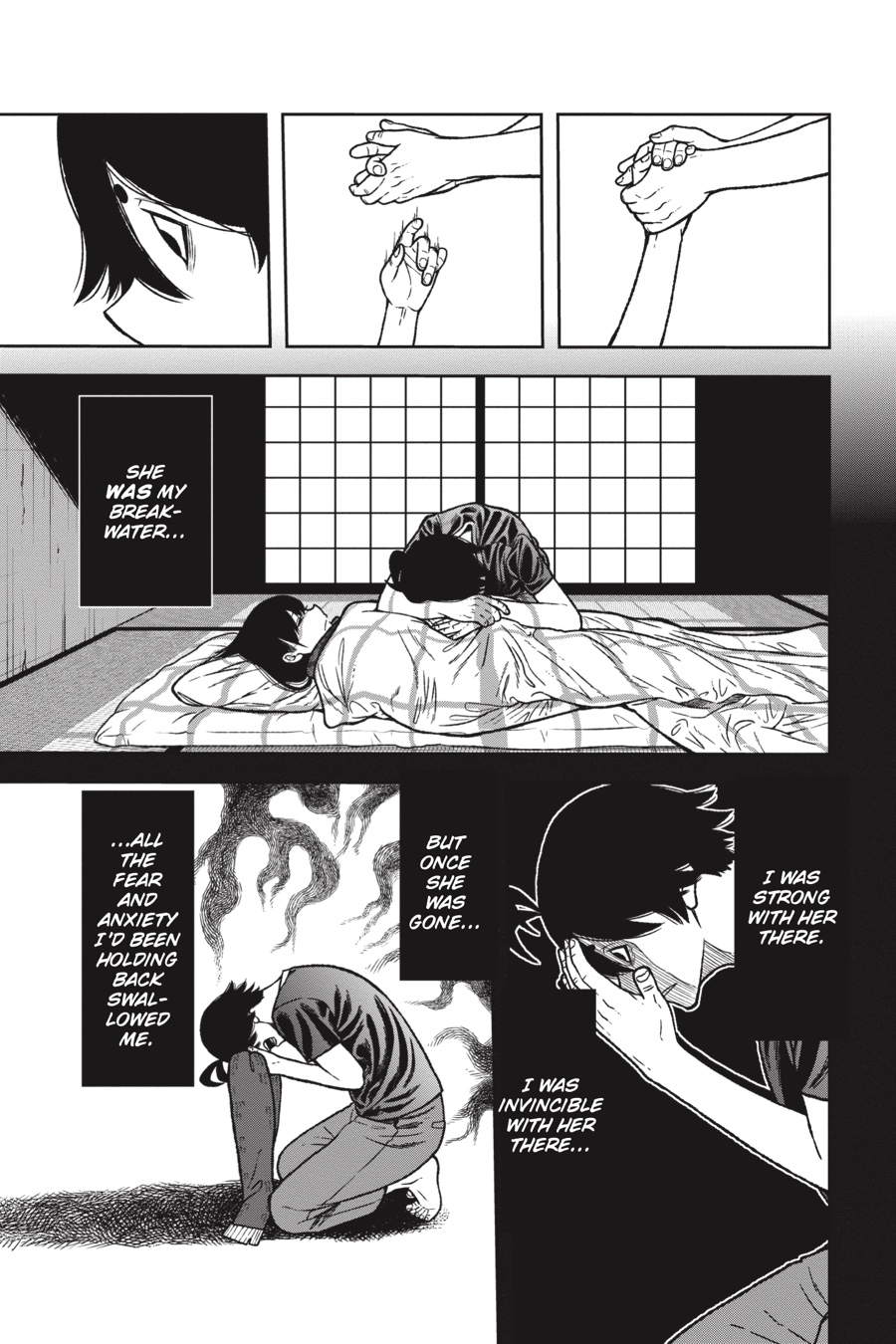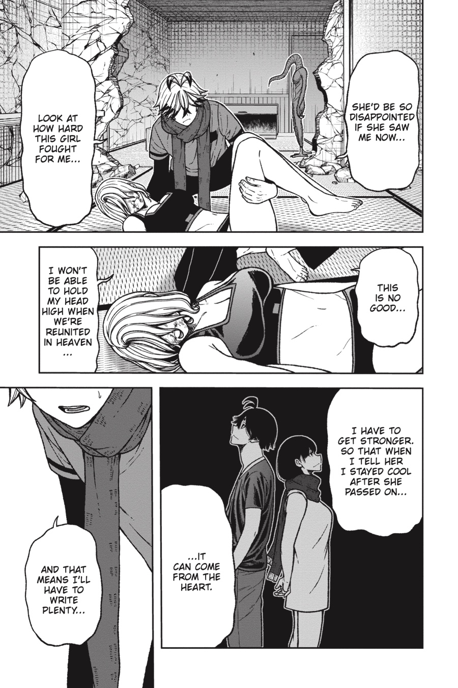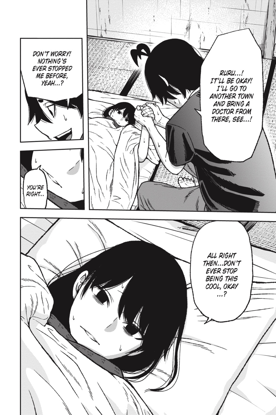 The Oni base below Kiyomizudera has been overrun by Tsubakiri’s abominations! After fending off one Aguri, a second puts the devoted Kuina out of action. Now it’s up to the cowardly Rokuro to get them both out in one piece, but the quivering boy who knelt there just moments ago is no longer. As Rokuro prepares to unleash his terrifying Oni blood, an unsettling, deadly calm spills forth from him…Meanwhile, the rest of the class fights for their lives against the creatures and Momotarou stalking the halls. With their exits cut off, these students are about to receive their first practical combat lesson—one where failure means a fate worse than death…