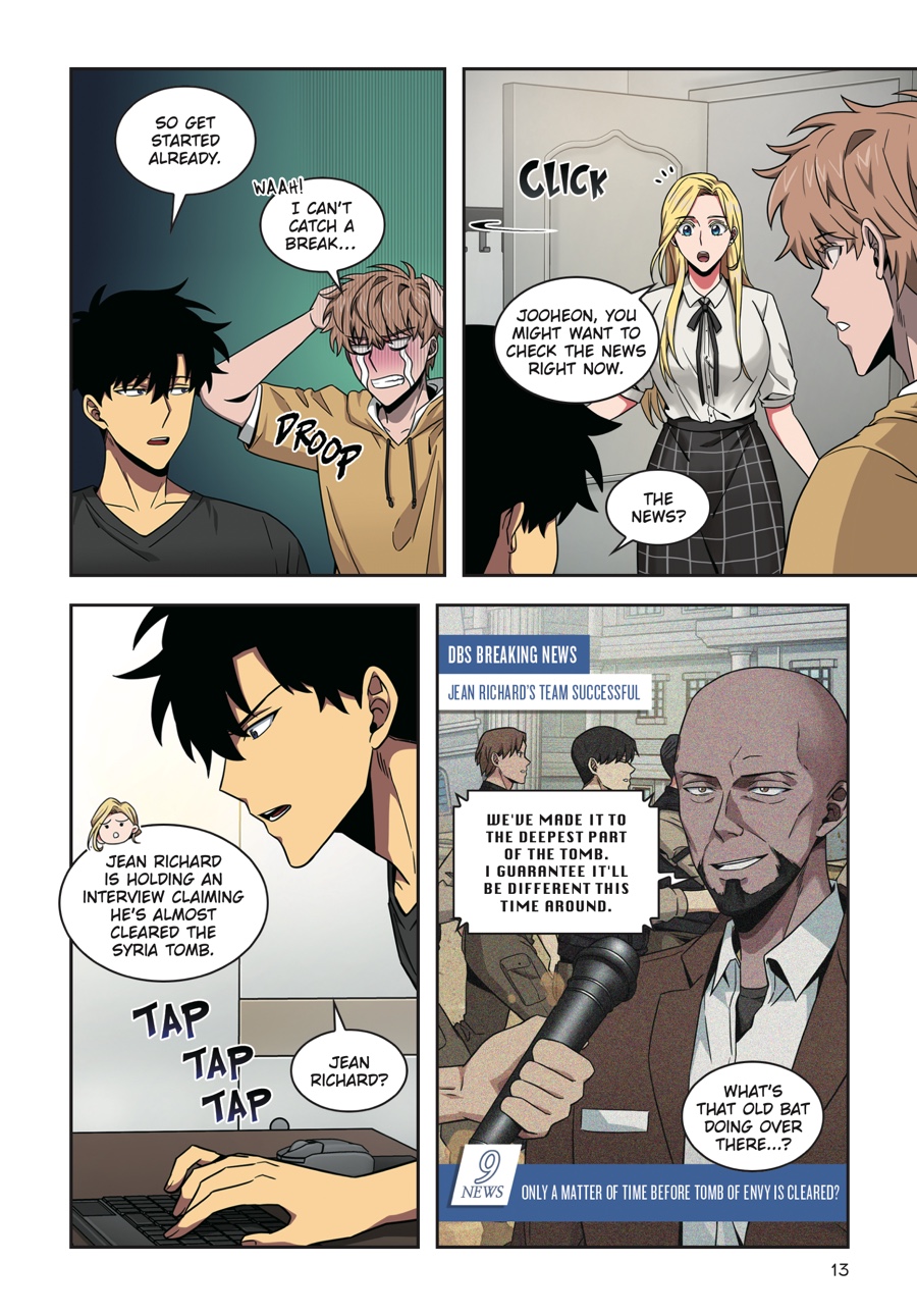 With the Relics of Sloth and Lust under his belt, Jooheon is running circles around his competition! But then Pandora kidnaps Jaeha, forcing Jooheon to venture into the Tomb of Envy without his trusty sidekick. To make matters worse, he is ambushed by Seolah Lee, a capable teammate from his previous life who now works for an enemy organization. But right as he braces for a tough fight, a mysterious Relic of memory activates on its own…triggering an unexpected effect on Seolah!
