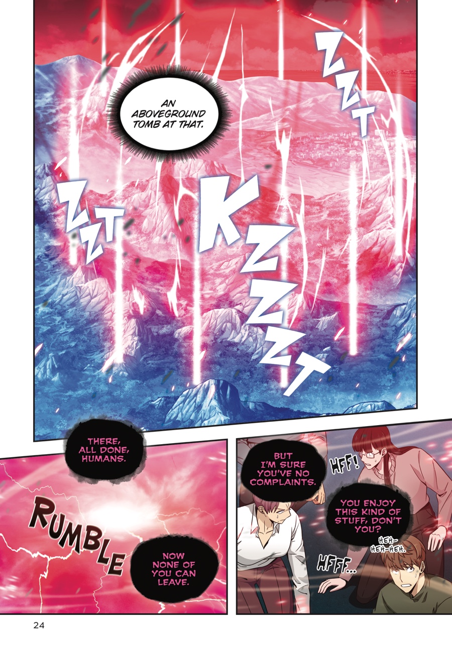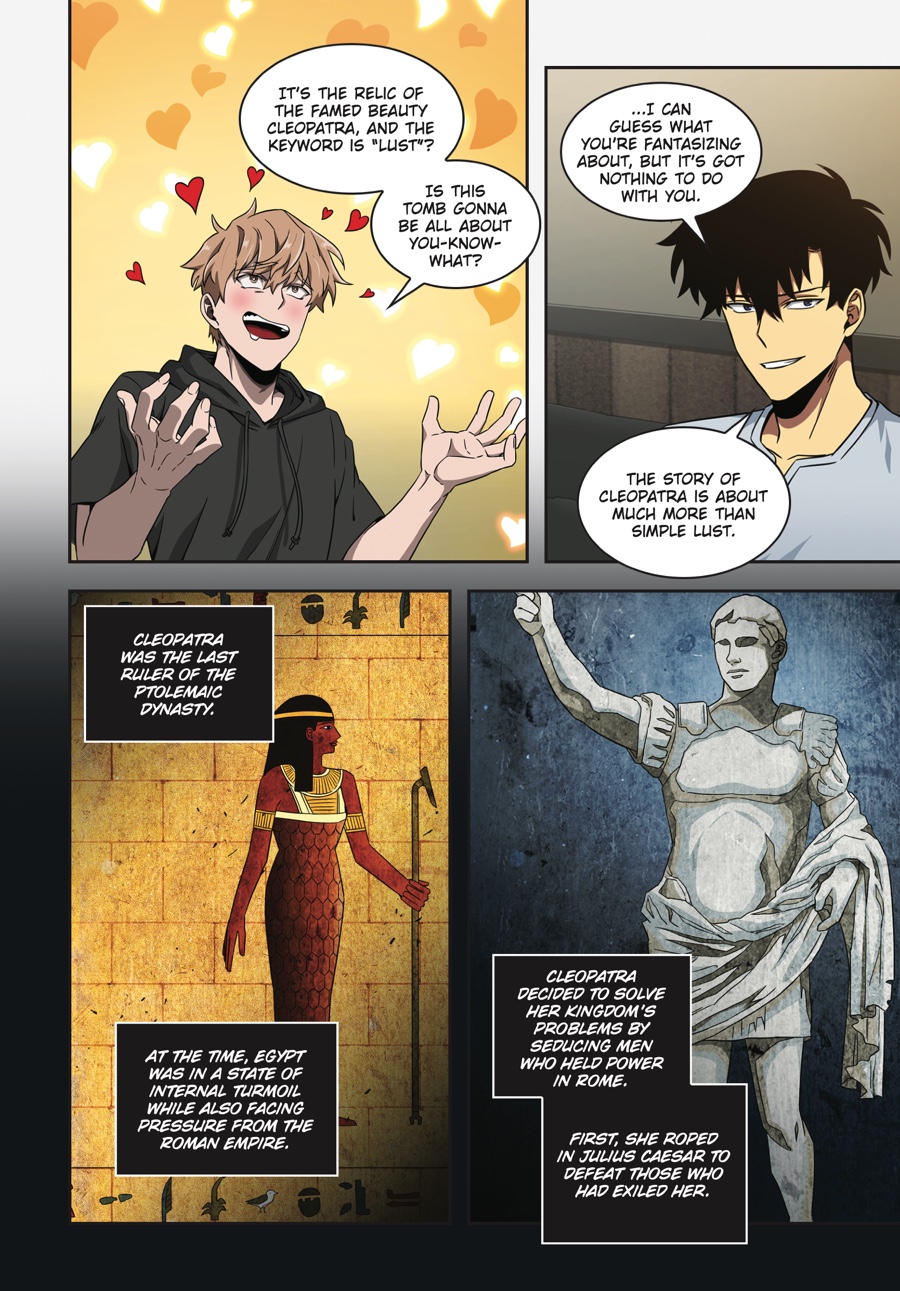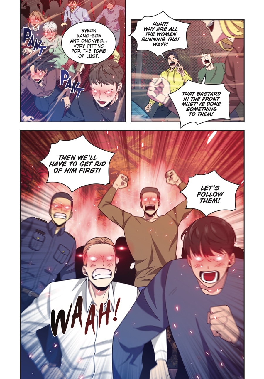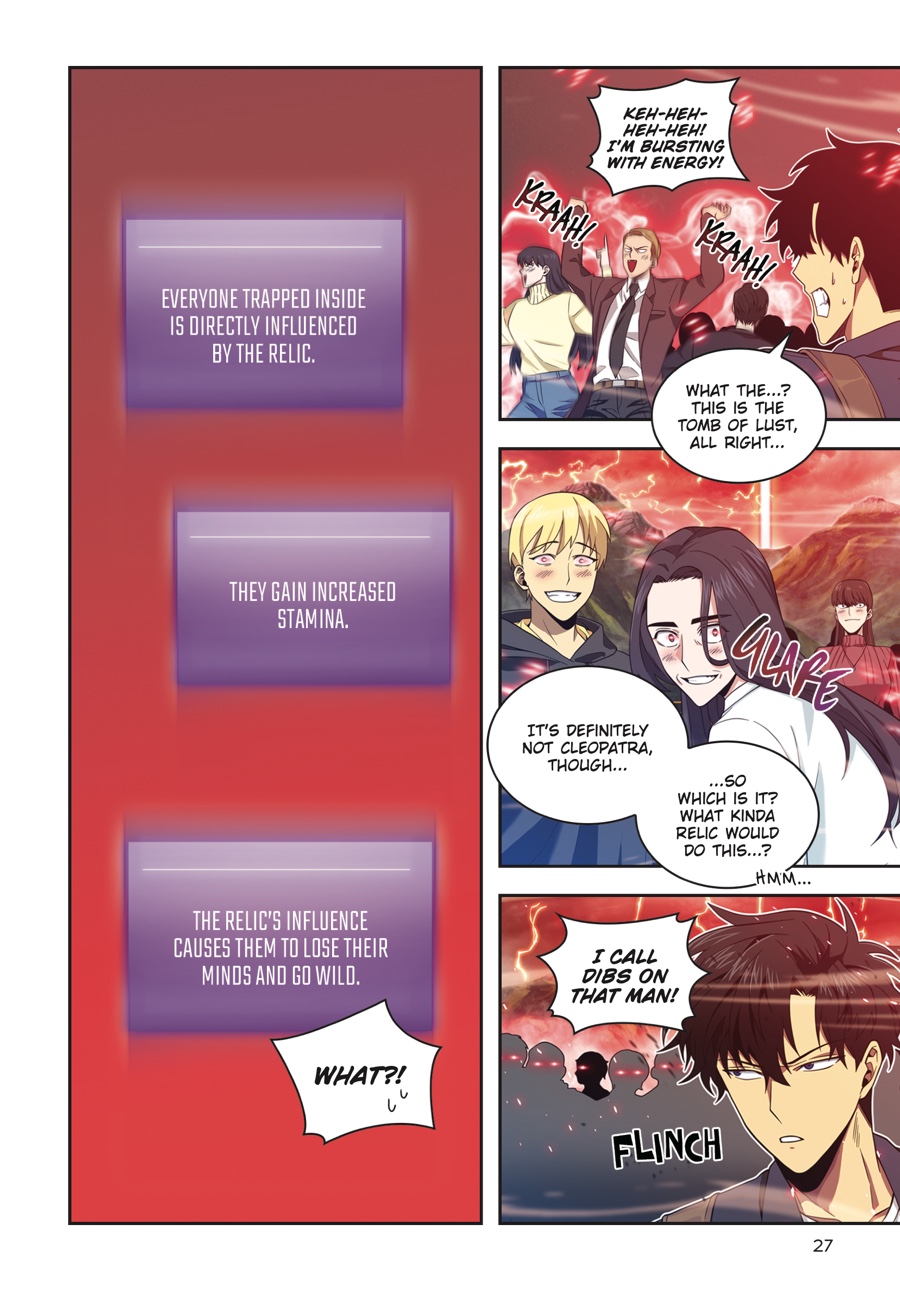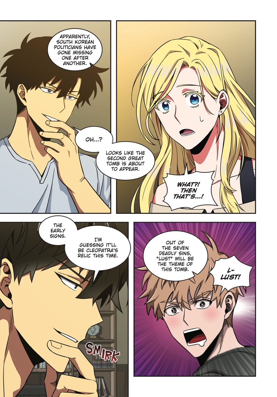 With the Relic of Sloth in his grasp, Jooheon is off to a great start. But there’s no time to rest on his laurels — the second of the Seven Great Tombs has suddenly appeared right in his home country! Living up to its name, the Tomb of Lust proves to be quite the rosy adventure. Instead of the usual traps and enemies, Jooheon finds himself running from hordes of bewitched women trying to have their way with him…But just as he is cornered and about to fall prey to unbridled desire, a familiar power strikes out at his aggressors. It seems there’s someone out there who’s very invested in keeping other women away from Jooheon!