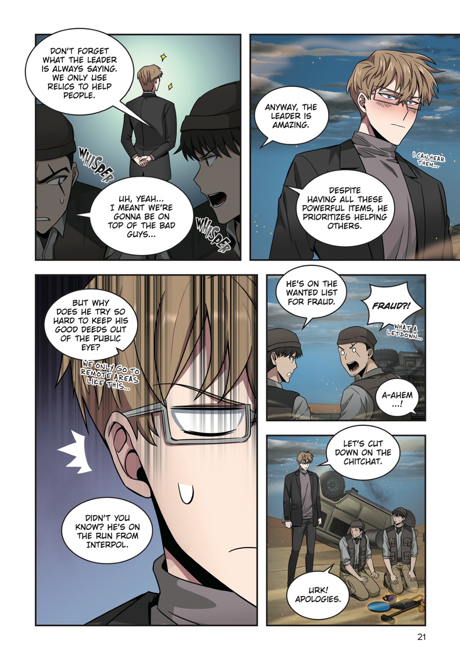 Jooheon’s quest to find (and steal) all the Relics pits him against yet another teammate from his previous life. This time it’s Julian Miller, a paragon of righteousness and justice—in other words, the oil to Jooheon’s water! But while he’s busy facing his former deputy, a terrifying enemy plots his demise. The Chief Commander of Relics has its many eyes on the crafty tomb raider!