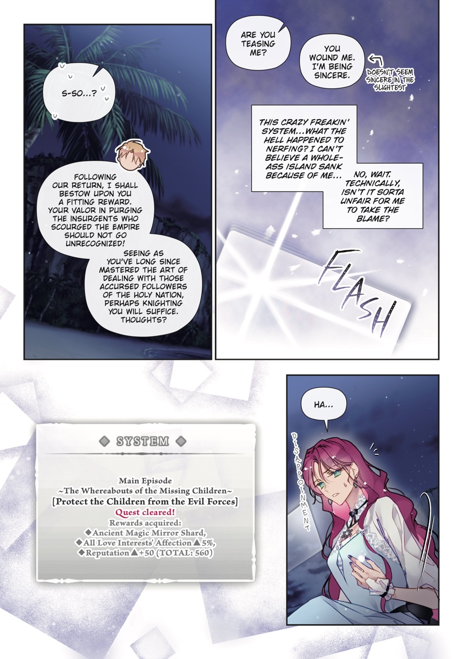 Just when Penelope and Callisto think they’re safe, a torrential wave plunges them deep into the ocean! All Penelope can focus on is getting out alive, so...how did she end up with Callisto’s lips on hers?! With Eckles’s affection meter reaching 99%, though, the duke’s daughter can't afford to dwell on the other love interests. Her coming-of-age ceremony is swiftly approaching, which means the end of Hard Mode follows right behind. One measly percentage point away from finally escaping the game—can Penelope make it in time...?!