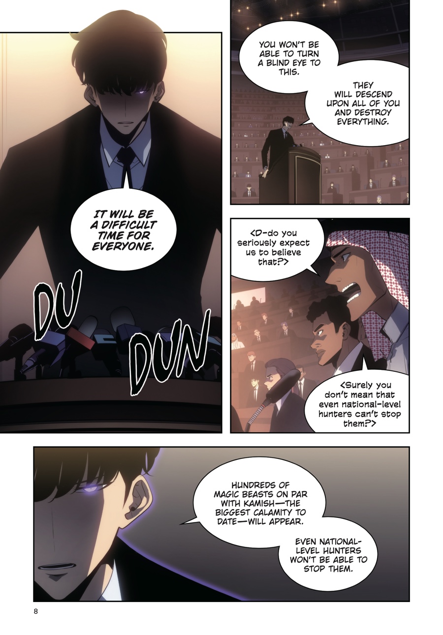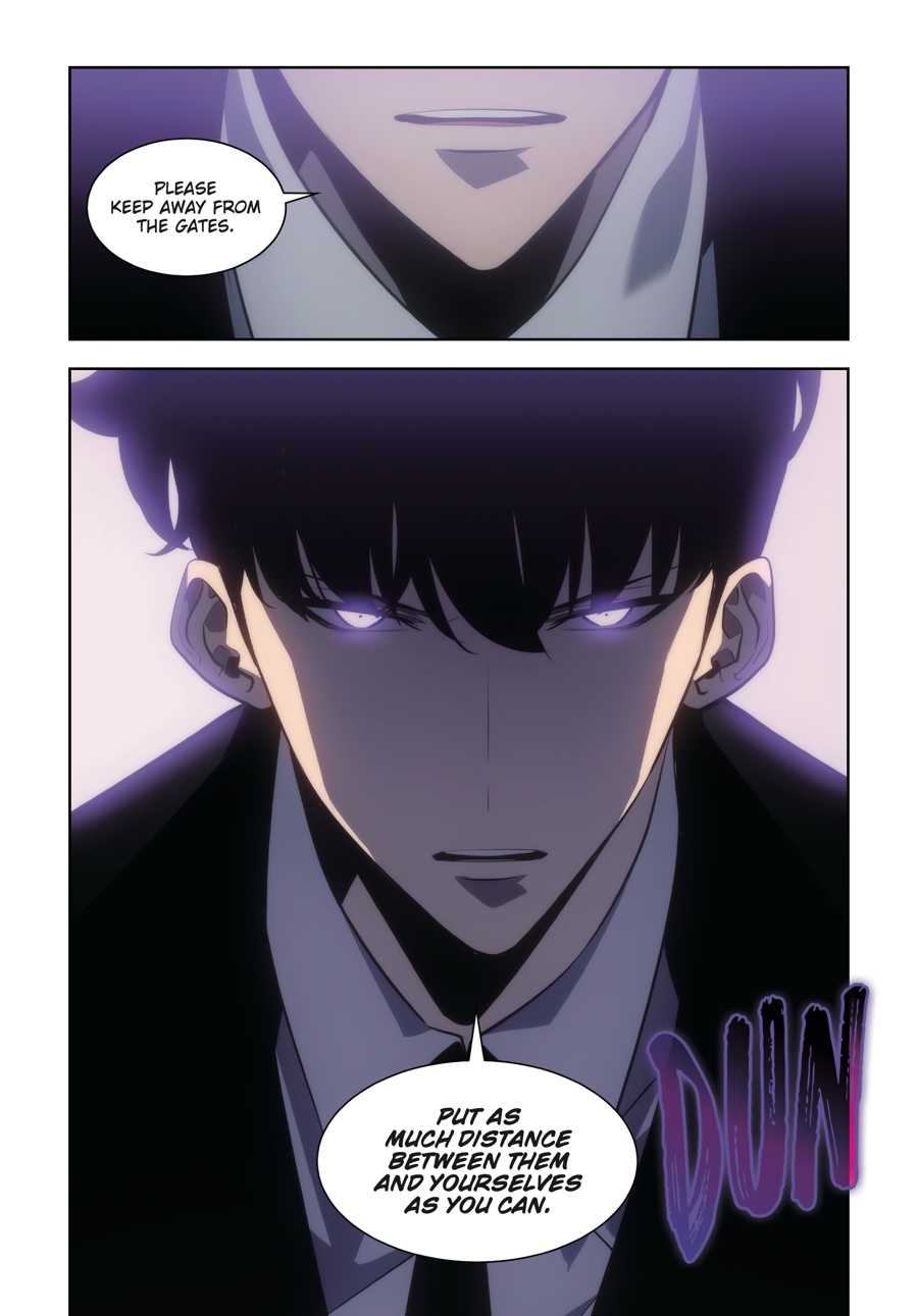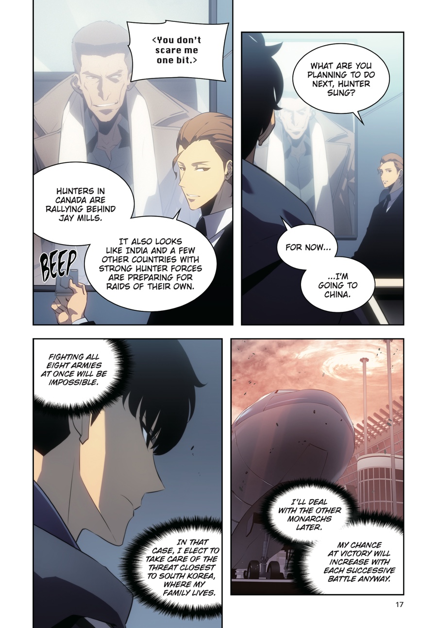 Outnumbered a hundred to one, Jinwoo and his shadow army ready themselves for the fight that will determine the fate of the whole world. As hunters worldwide gather to make mankind’s last stand, Jinwoo focuses on the gate closest to home and those he loves. A superior strategy is his only hope in the face of such overwhelming odds, but as the first wave emerges, it’s clear his foes are already a step ahead of the new Shadow Monarch...Has Jinwoo leveled up enough to defend humanity from certain destruction?!