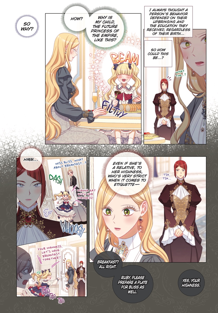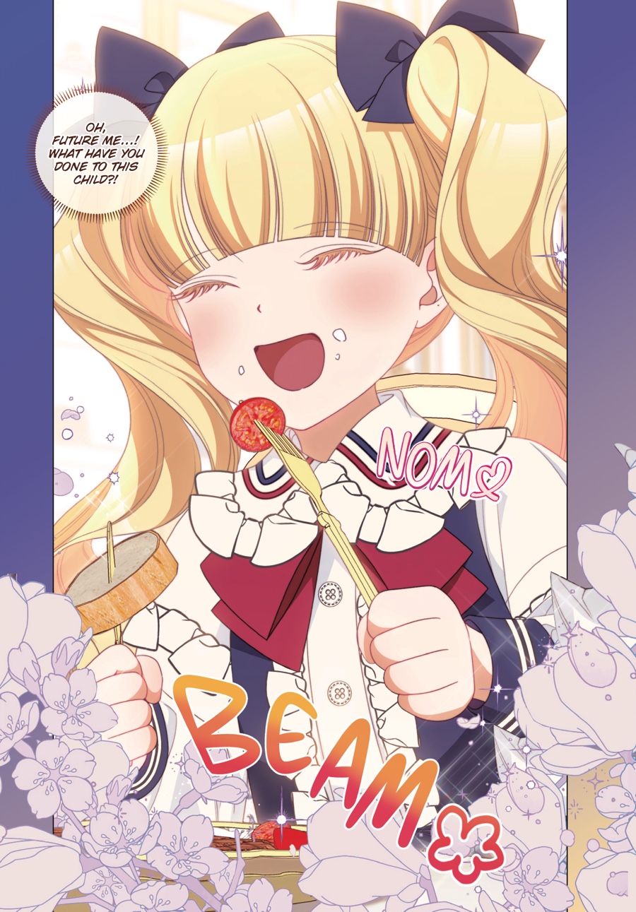 Princess Bliss Franz believes that she never should’ve been born and that she is solely to blame for her mother Aria’s frailty. So naturally, the best course of action would be to stop her parents from having her at all—a feat that is only possible for a child of Aria and Asher, possessing the ability to travel through both time and space! Keeping her real identity a secret is hard enough, but with an imposing lady-in-waiting watching her every move, potential space-time paradoxes, and a meddlesome twin sister trying to stop her, it’s just one obstacle after another! Can Bliss succeed in giving her parents the happy future of her dreams?