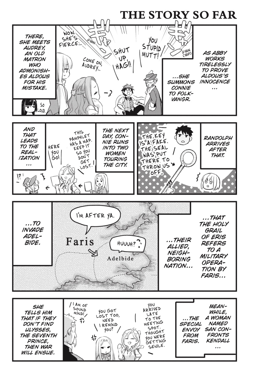 Connie has finally solved the mystery of Lily Orlamunde’s key and discovered the true meaning of “the Holy Grail of Eris”—a military operation devised by Faris, their neighboring allied nation, to invade Adelbide. Now, the story rewinds to the past, allowing a glimpse into the life of the woman who left the cryptic message. From Lily’s meeting with Scarlett, to her childhood with Crown Prince Enrique, to Scarlett’s execution…just what did she come to discover? And what drove her to commit suicide?
